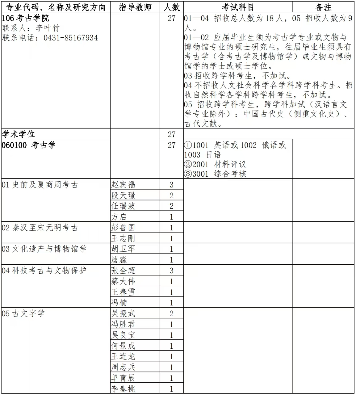 一、考古学专业招生目录