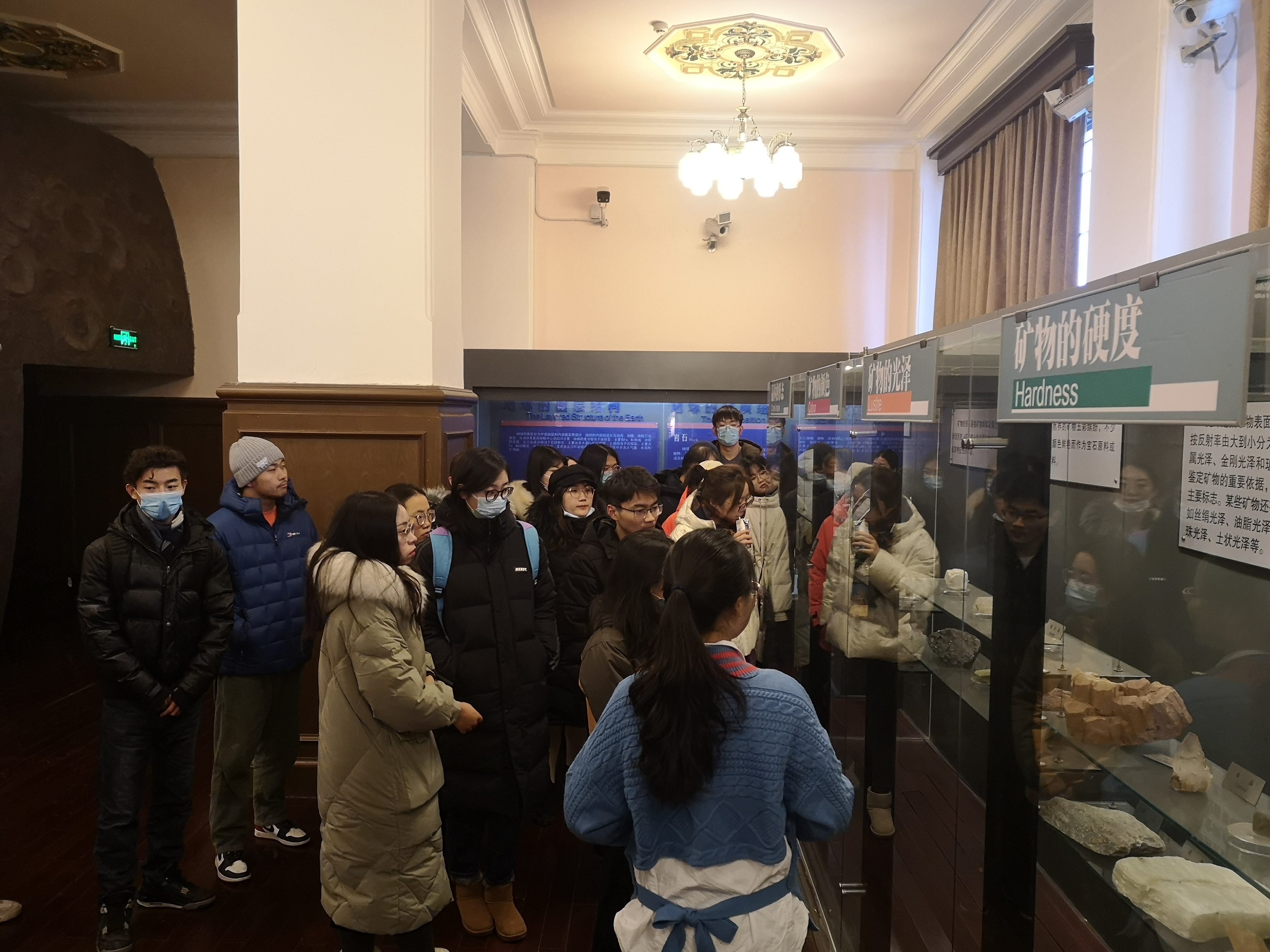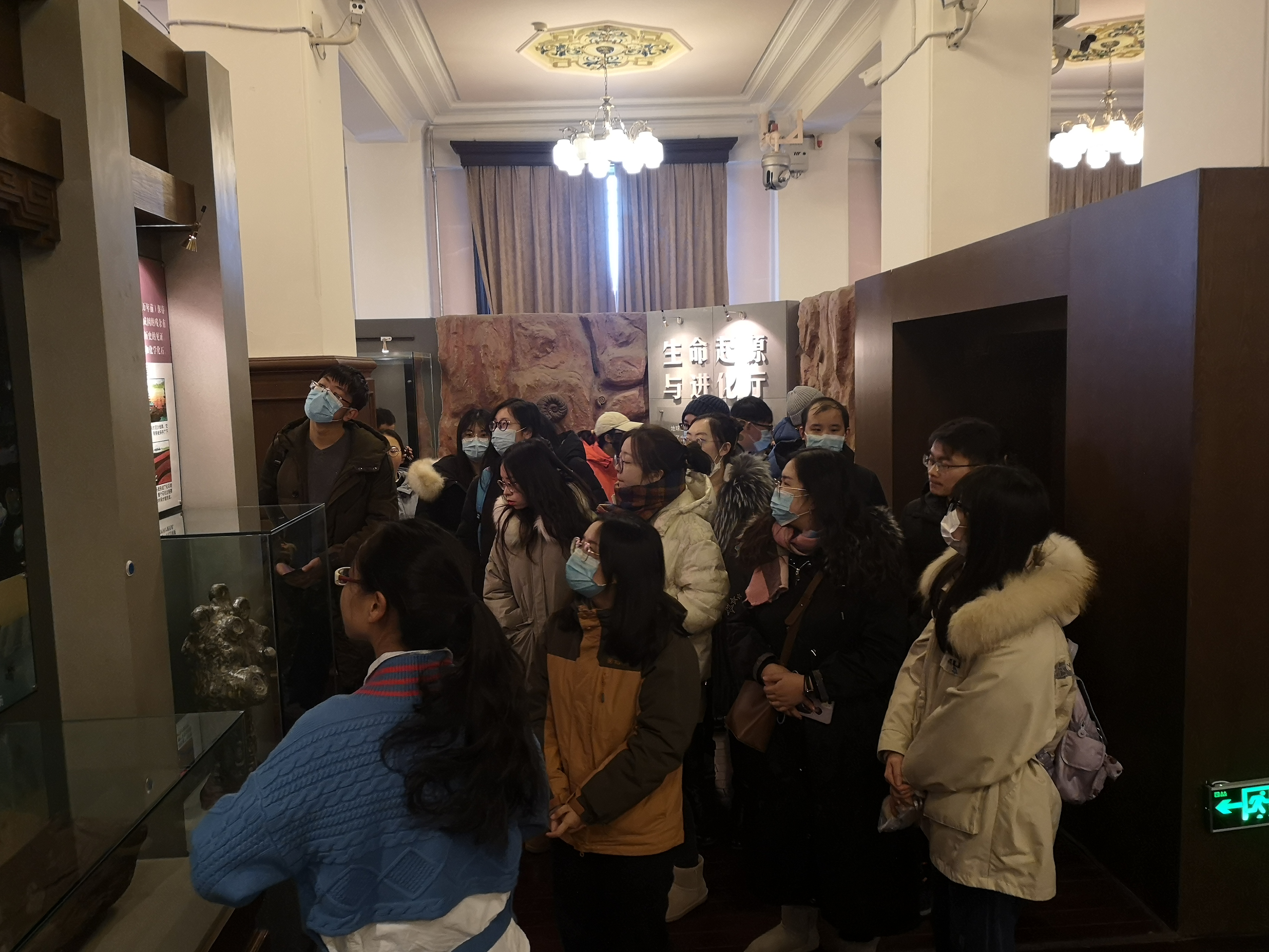 的教学楼,是他生前学习和工作过的地方。地质宫一楼是地质博物馆,步入地质博物馆,映入眼帘的是精致的岩石标本,伴着讲解员的解说,同学们依次参观了地球奥秘厅、生命起源与进化厅、矿产资源厅、恐龙厅、宝玉石、奇异石厅等展厅,大家时而驻足聆听讲解,时而凝神观察标本,纷纷惊叹于大自然的鬼斧神工。看着澄江动物化石群,热河生物群,山旺生物群以及形态各异的恐龙化石,同学们的思绪仿若飘向了亿万年前的世界。