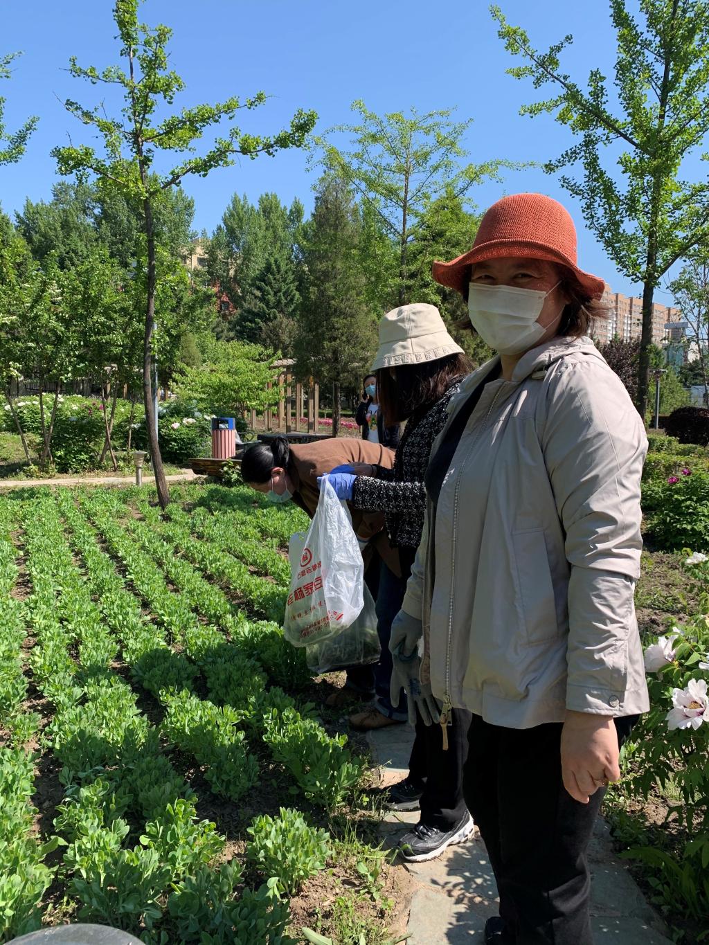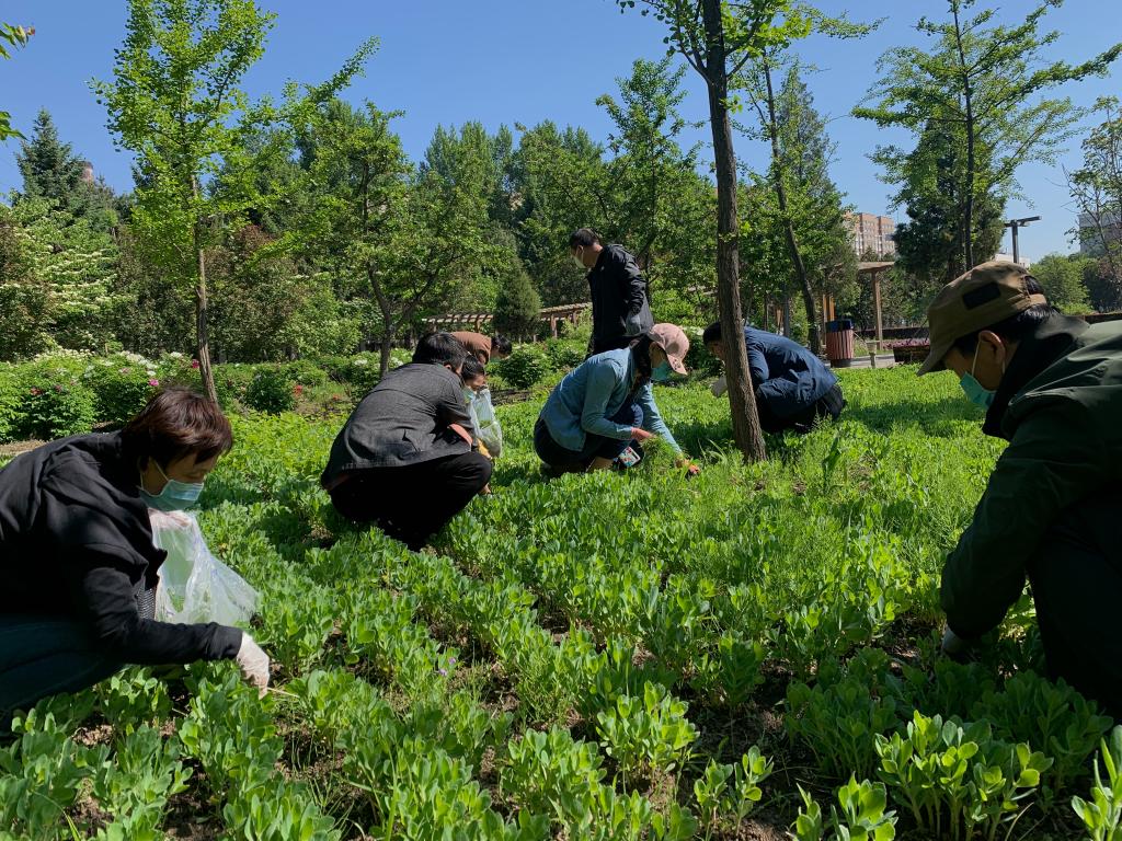 本次除草活动选定在草本植物“八宝”的种植区。该区野草丛生,已经严重影响原绿化景观。党员们手拿垃圾袋,边拔草边清理。劳动中大家辨认着草木种类,学习草木的生长习性,分享各自养花经验,观察土地里蚂蚁分布和蚯蚓出没……