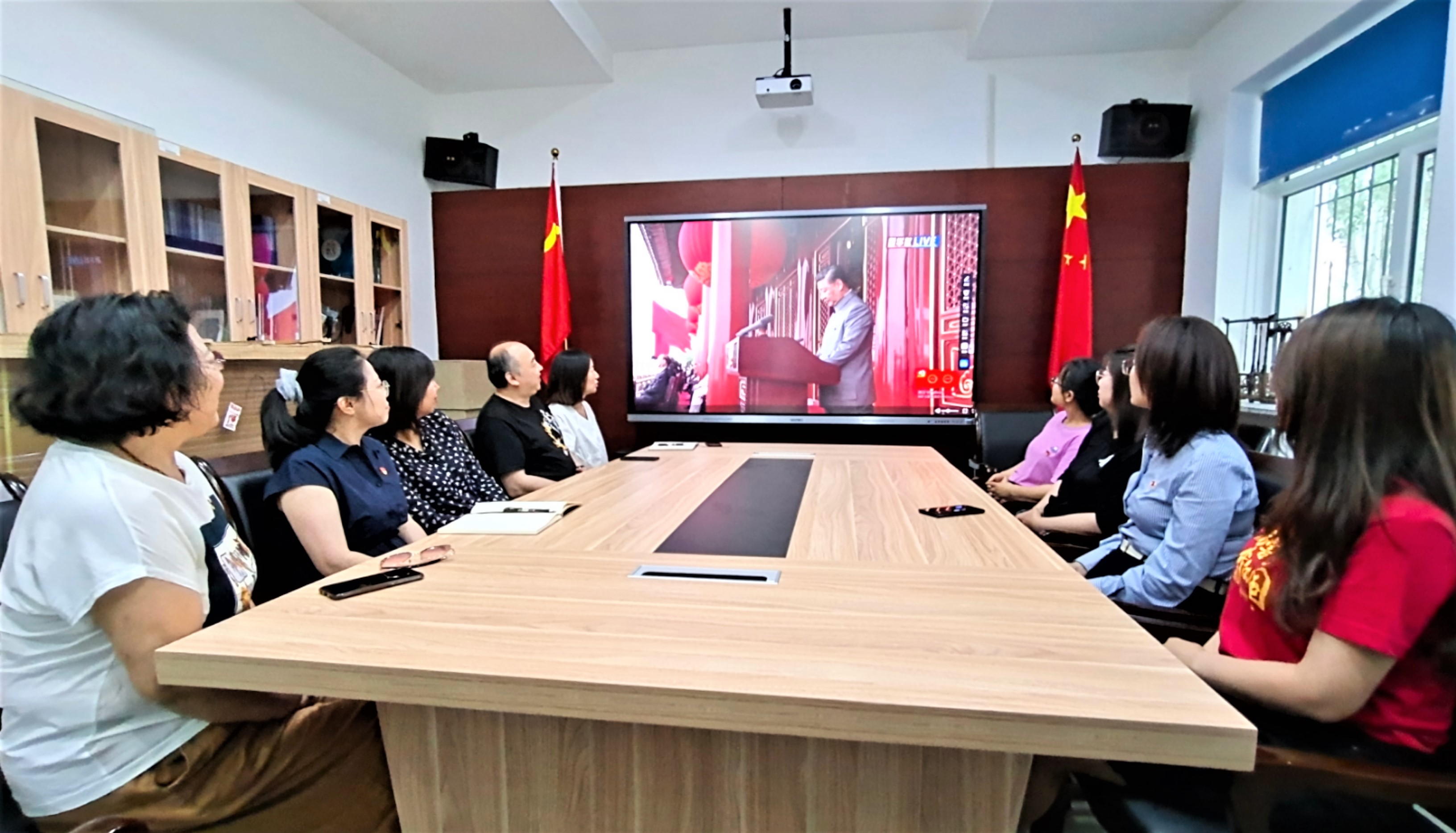 党团活动室进行了集中收看。其他党支部分解为党小组在寝室、教研室或办公室收看。