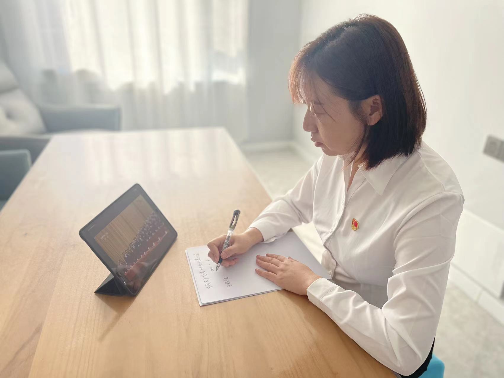 党委办公室张红蕾表示:报告中的一句话给我触动很大:“加强家庭家教家风建设,推动明大德、守公德、严私德”。社会的稳定、美好的生活,离不开每一个人每一个家庭的共同努力。点点水滴,汇成江河湖海。粒粒尘土,筑成沃野高山。为人妻母,当身体力行、积薄为厚,为家人、为他人、为党、为国家尽绵薄之力。