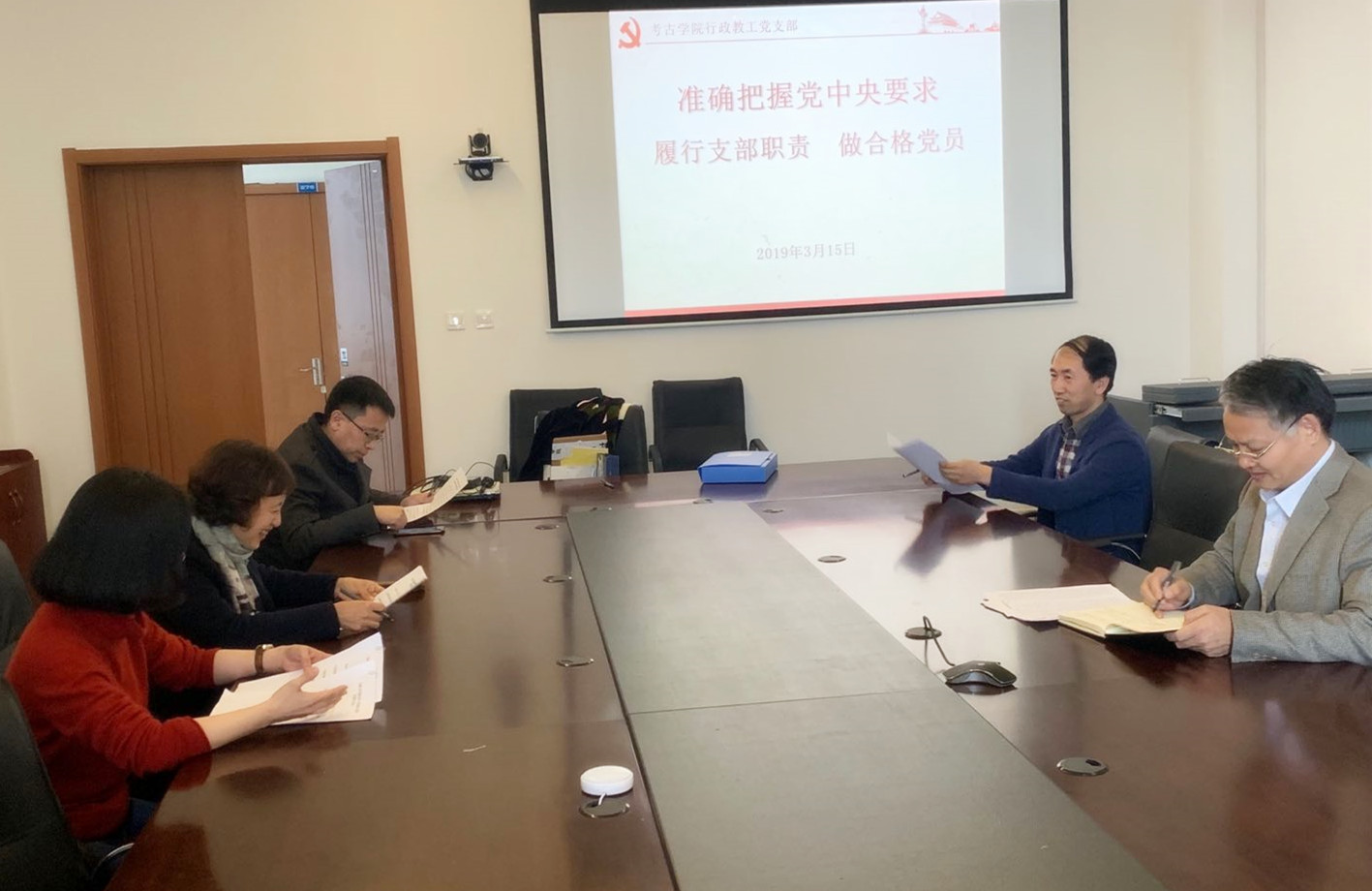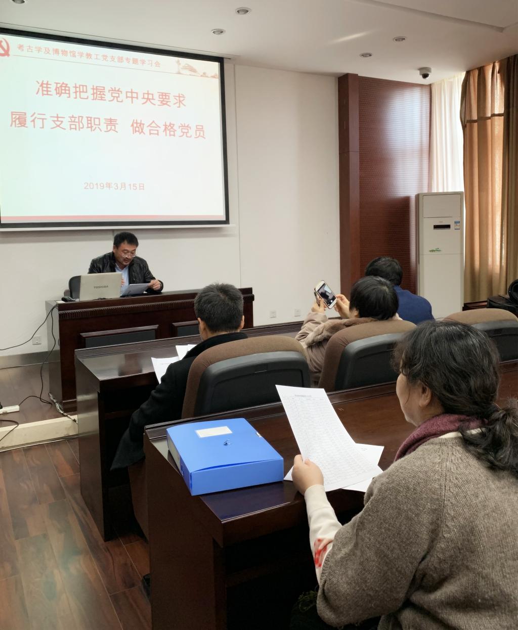 考古学及博物馆学教工党支部和行政教工党支部围绕着2018年度组织生活会的中心思想进行了专题学习。