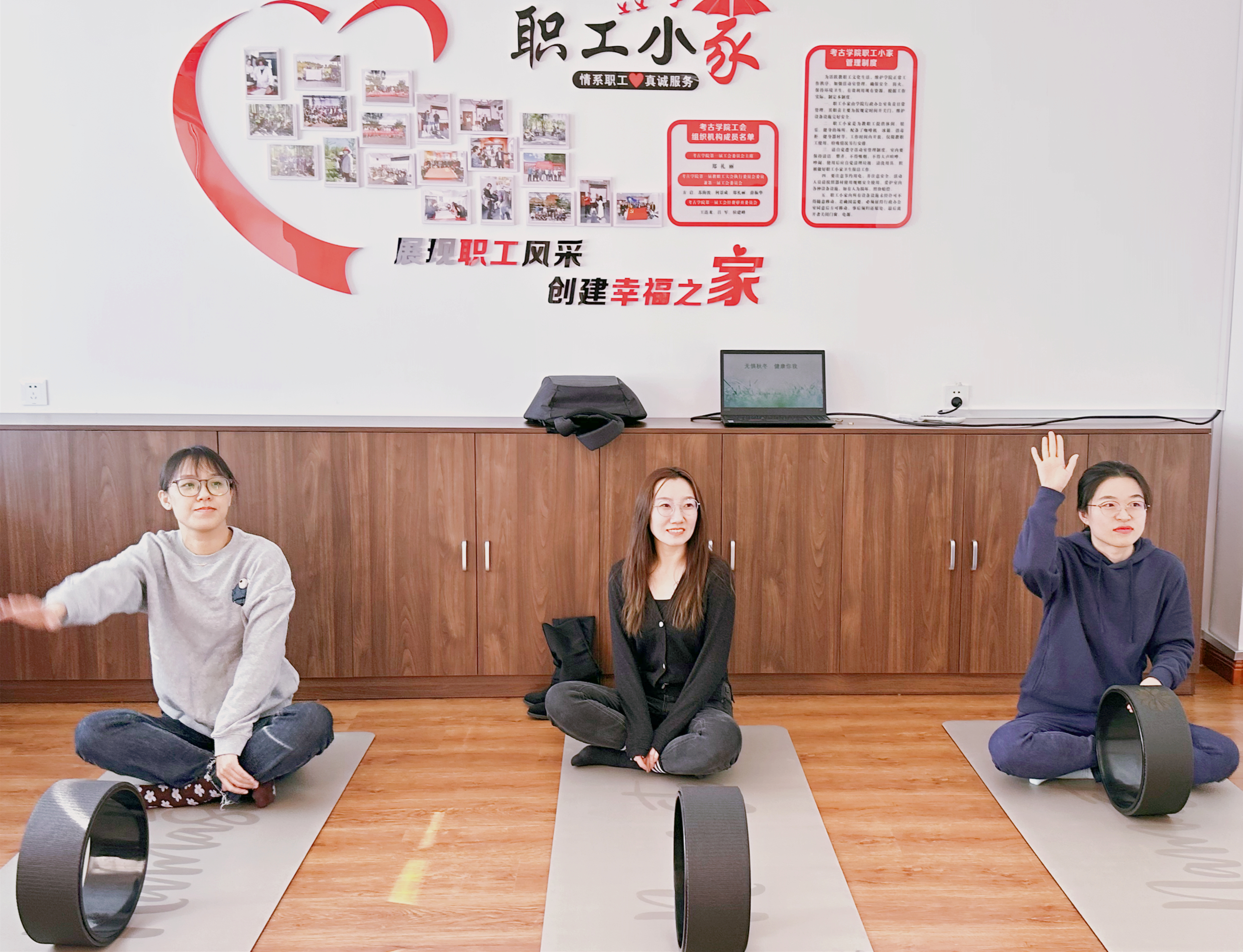 身体是革命的本钱,健康是最大的财富。针对长时间伏案工作造成的颈、肩、腰等部位出现问题较多的情况,妇委会邀请瑜伽教练为女教职工开设瑜伽轮和形体课,11月4日开课以来,已经授课4次。越来越多的女教职工参与到课堂锻炼中,身体上的疲劳疼痛和紧绷感得到了有效缓解。