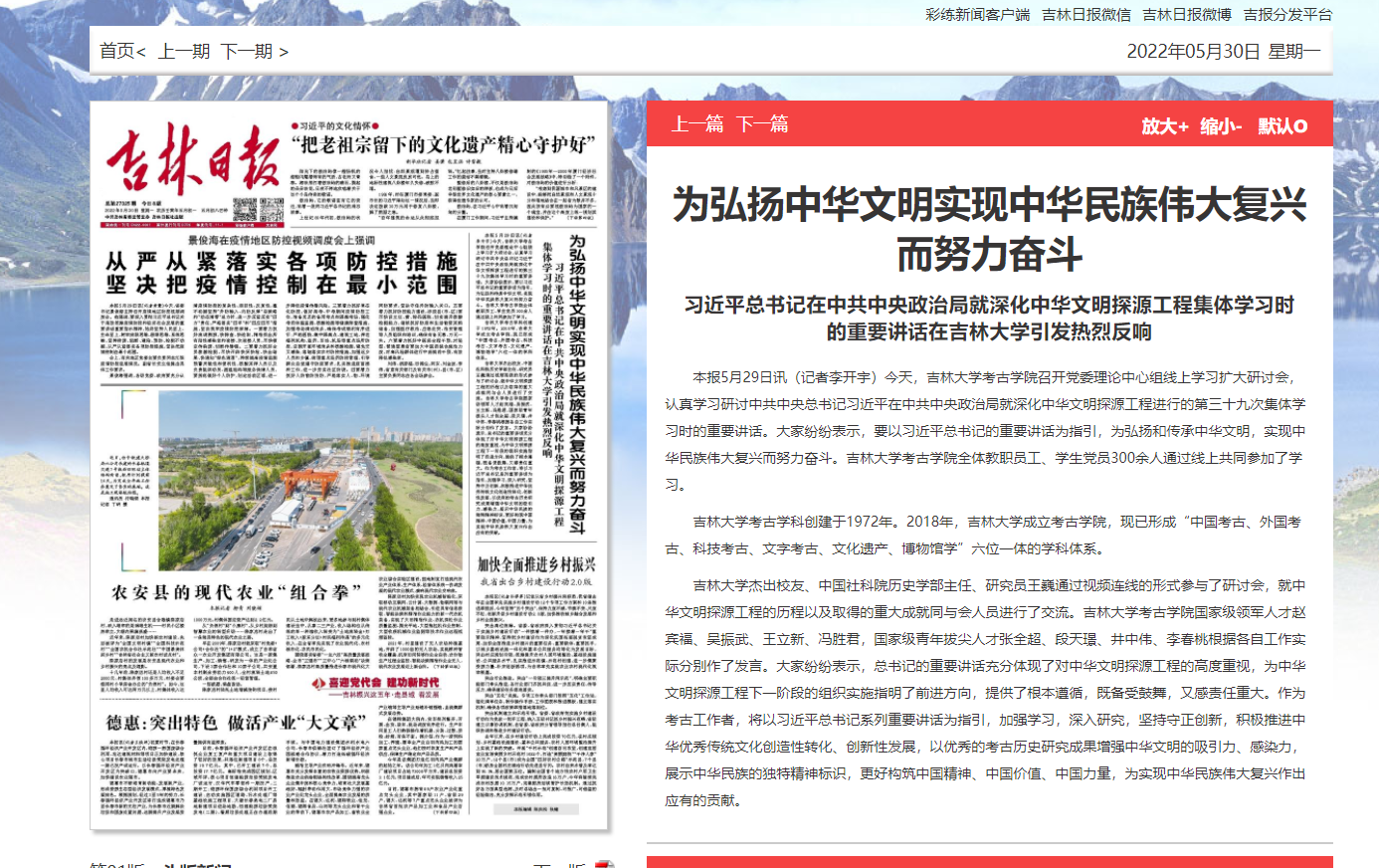 转发吉林日报新闻:为弘扬中华文明实现中华民族伟大复兴而努力奋斗--习近平总书记在中共中央政治局就深化中华文明探源工程集体学习时的重要讲话在极速飞艇 引发热烈反响