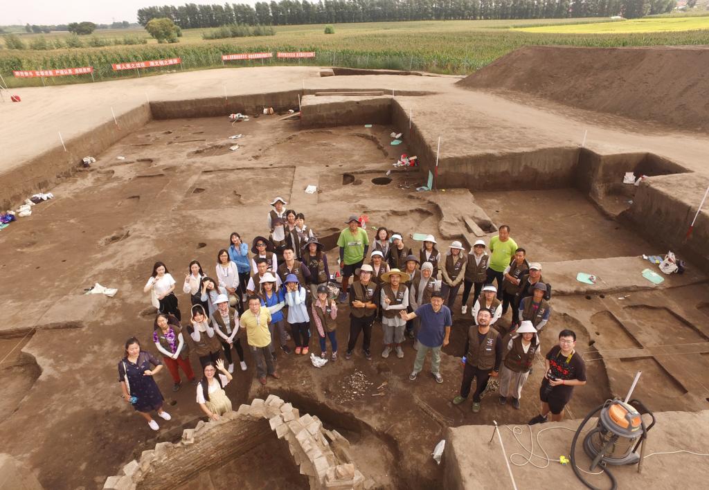 院长赵宾福、党委书记李宏伟、副书记兼副院长侯建峰、学生工作办公室主任杨晨、教学与师资办公室主任王思拓、教学秘书王丽婷、外事秘书于潇濛、科研与研究生办公室科研秘书李叶竹、行政办公室秘书肖飞一行9人来到吉林省双辽市大金山遗址考古工地慰问2017级文物与博物馆班实习的师生们,并为他们带去节日的问候。