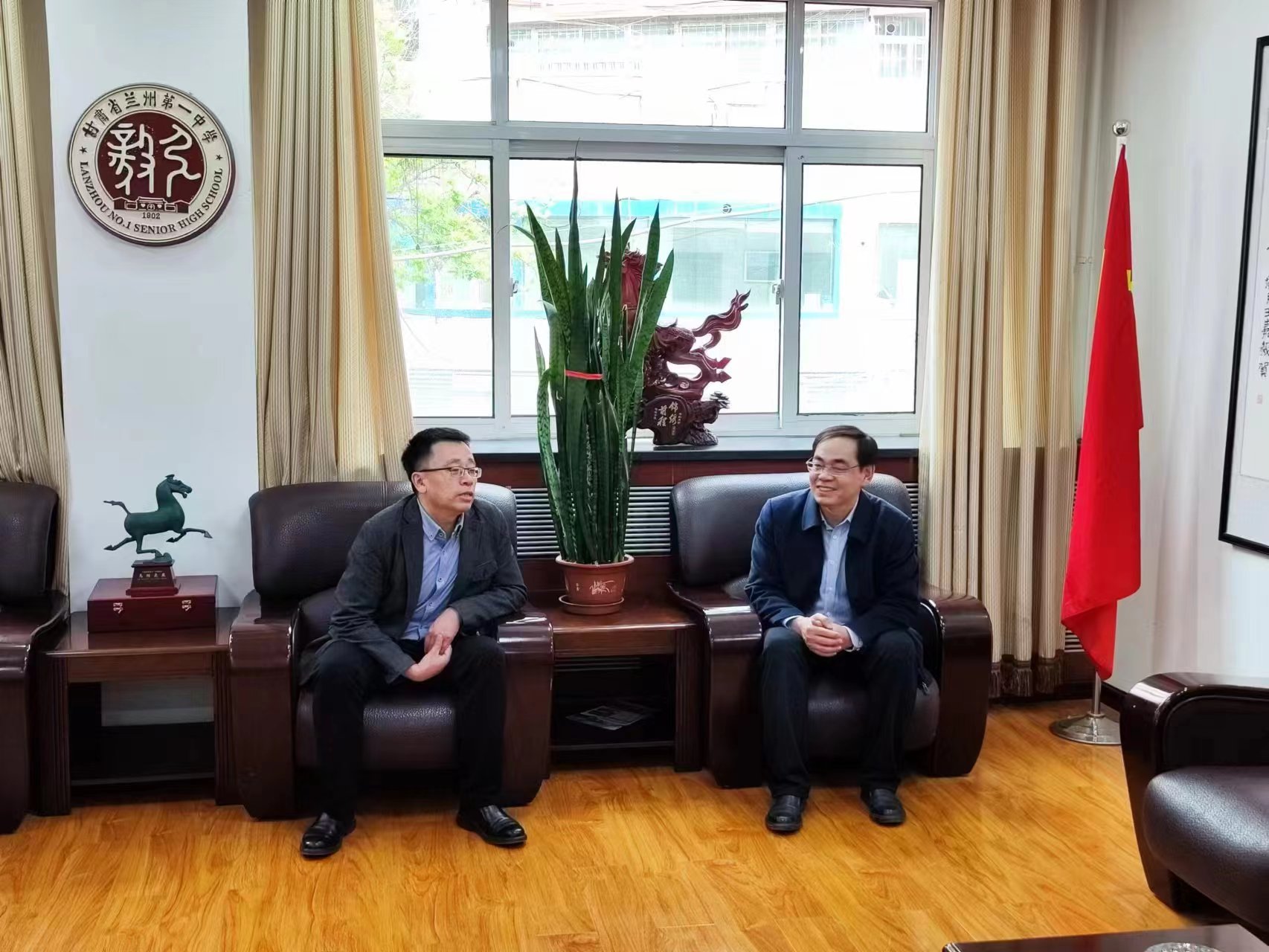 24日,在兰州市第一中学会客室,宣讲团成员与副校长马继林、高三年级副主任石磊举行座谈。侯建峰副书记介绍了极速飞艇