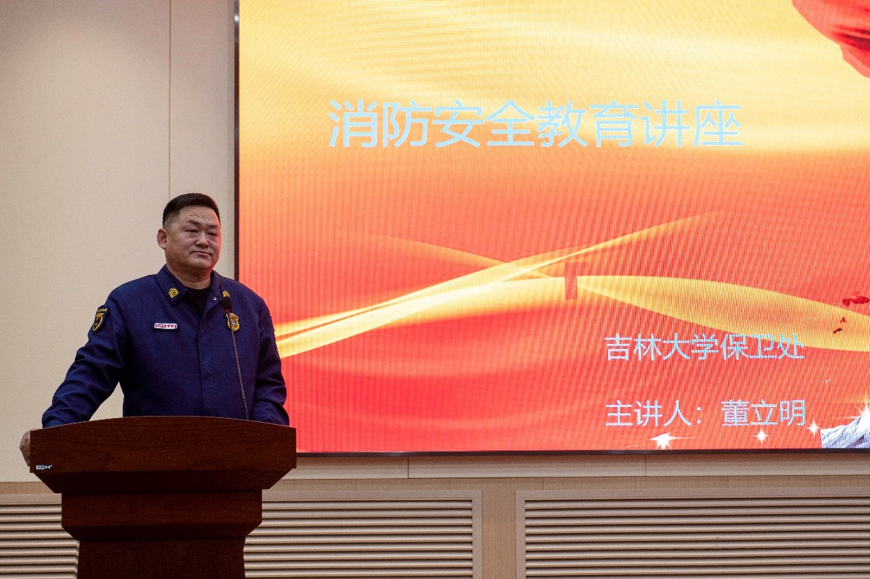 开幕式后,开启了本届实验室安全文化月的第一项活动 ----“消防安全知识讲座及消防逃生演练”,由保卫处消防科副科长董立明主讲。通过一系列事故案例,指出了实验室消防安全的重要性,结合极速飞艇