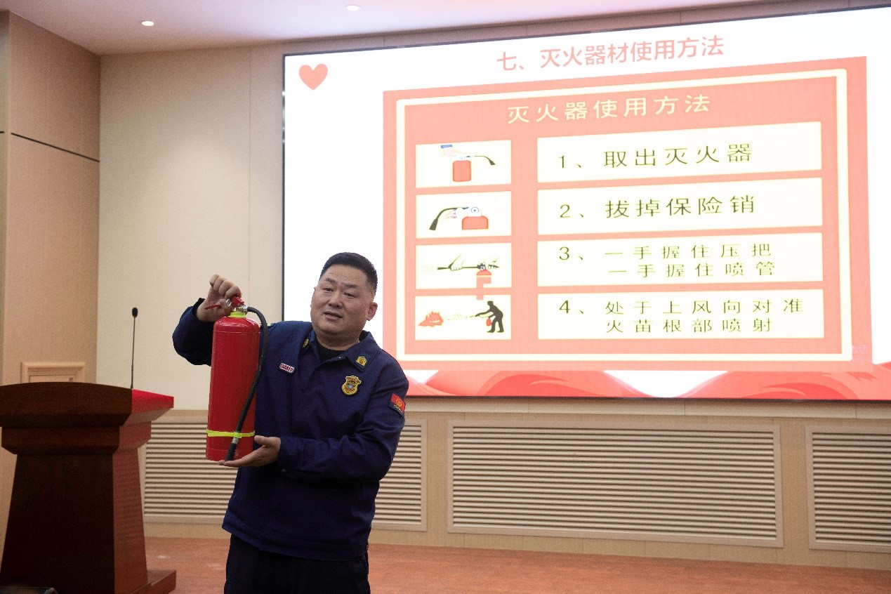 实验室工作实际,对实验室消防隐患及风险点做了详细介绍,重点强调了实验室消防安全的注意事项。最后,详细讲解、现场演示了灭火器和消防面罩的使用方法和注意事项。