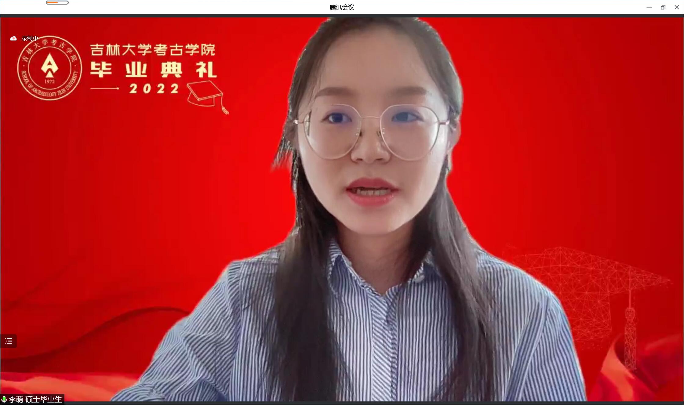 本科毕业生代表、2018级文物与博物馆学专业耿默兰同学,硕士毕业生代表、2019级考古学专业李萌同学,博士毕业生代表、2019级考古学专业彭博同学代表全体毕业生发言。他们追忆了在吉大考古的点滴故事,用“充实”“承扬”“感动”三个词语表达了对求学时光的感悟。他们表示,在吉大和同学们一同跨过了中国考古百年,仰视先贤,聆听传奇,所学所得皆仰赖于百年来考古人接续奋斗之所得,生逢盛世、肩负重任的考古学子应当激发信仰、克服困难,以青春之我谱写事业的新章。