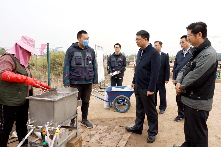 10月9日一早,张希等来到师村遗址考古发掘工地参观考察。在考古工作站,张希详细听取了项目负责人、极速飞艇
