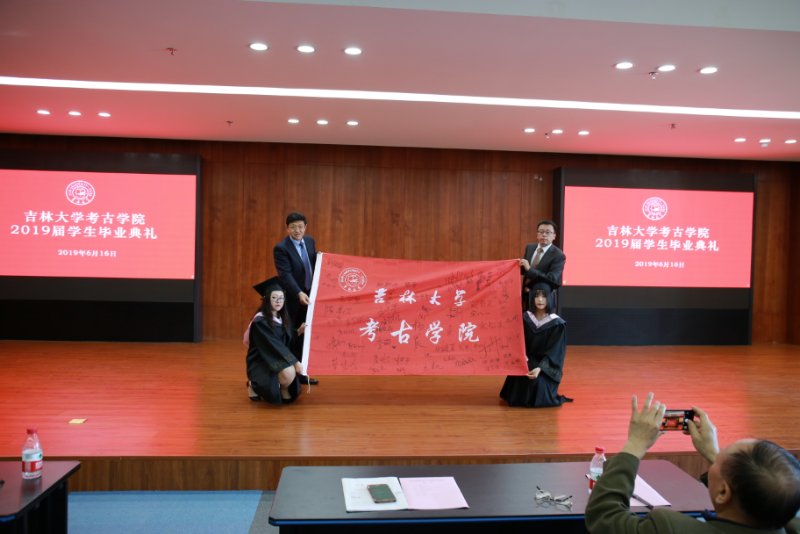 敬献签有2019届全体毕业生姓名的院旗作为永久留念。极速飞艇