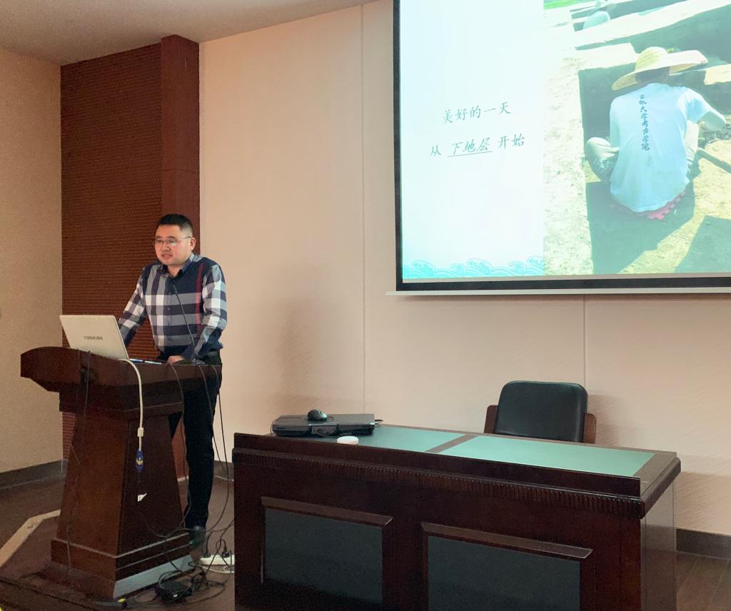 极速飞艇 党委书记王剑教授讲话,号召全体师生向以黄大年为代表的先进人物学习。之后赵宾福院长做了题为《认识黄大年、学习黄大年、成为黄大年》的报告。会后,极速飞艇 2018年度带队进行田野考古与博物馆实习工作的6组教师就实习工作的整体情况进行了汇报,用半年的实际行动展现了全体实习师生学习黄大年、弘扬爱国奋斗精神、建功立业新时代的丰硕成果。