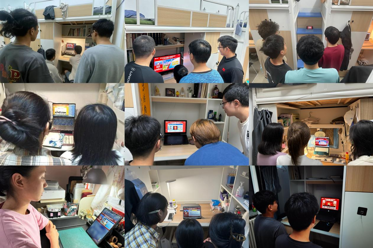》。因天气原因,学生们以寝室为单位在线收看讲座直播。
