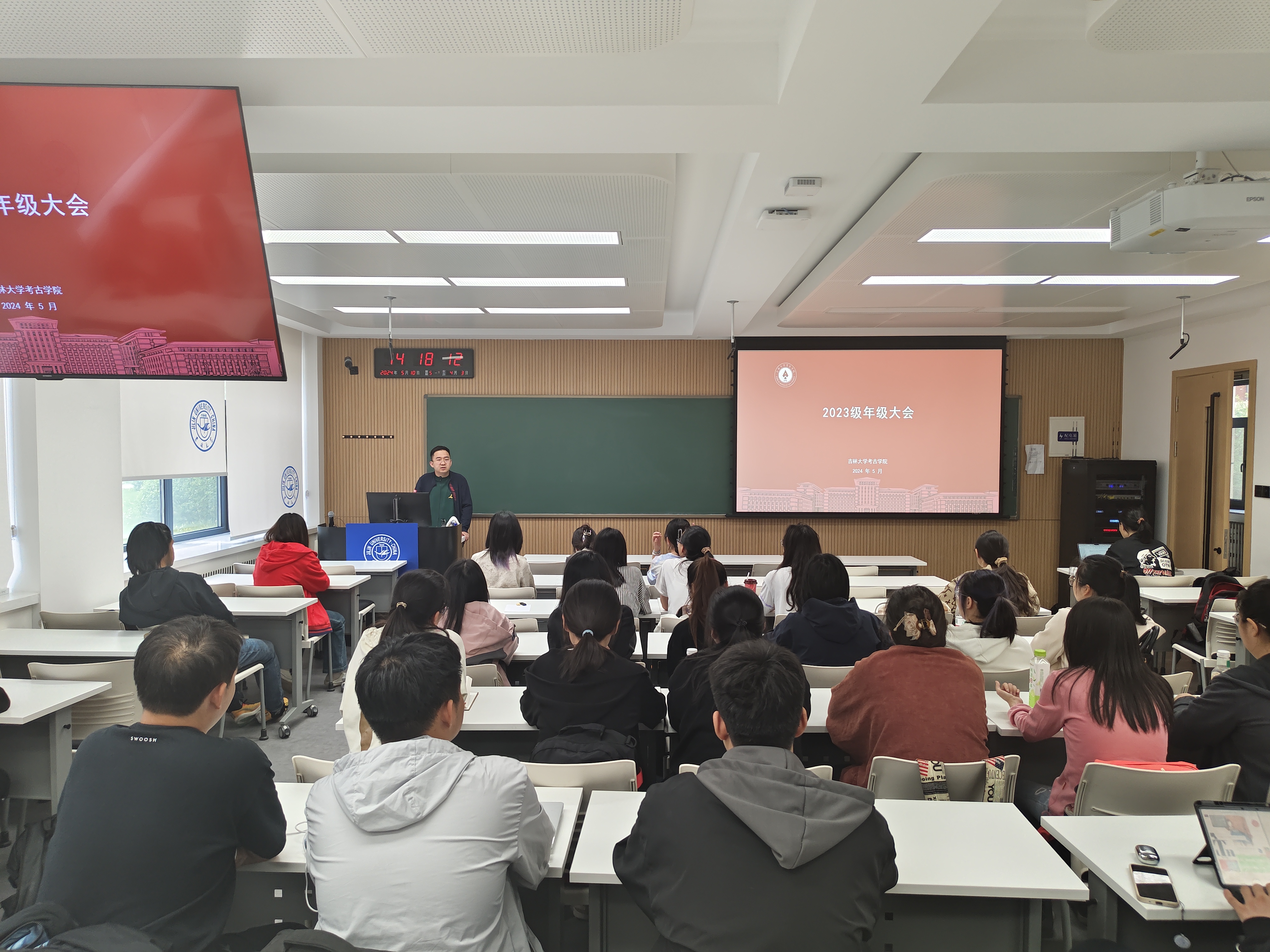于敬信教学楼E区107室召开2023级本科生年级大会,2023级本科生辅导员邱泽涵老师参加。