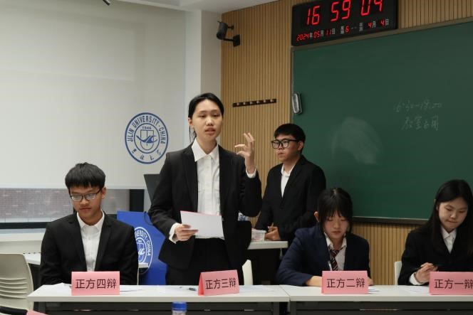 自由辩论环节,双方展开了激烈的唇枪舌战,你来我往,对彼此的论点进行了深入的剖析和论证。面对对方的刁钻提问,我方队员依然毫无畏惧,迅速反应,立刻给出有力的回应,充分展示了学子们敏锐的思维和出色的应变能力。