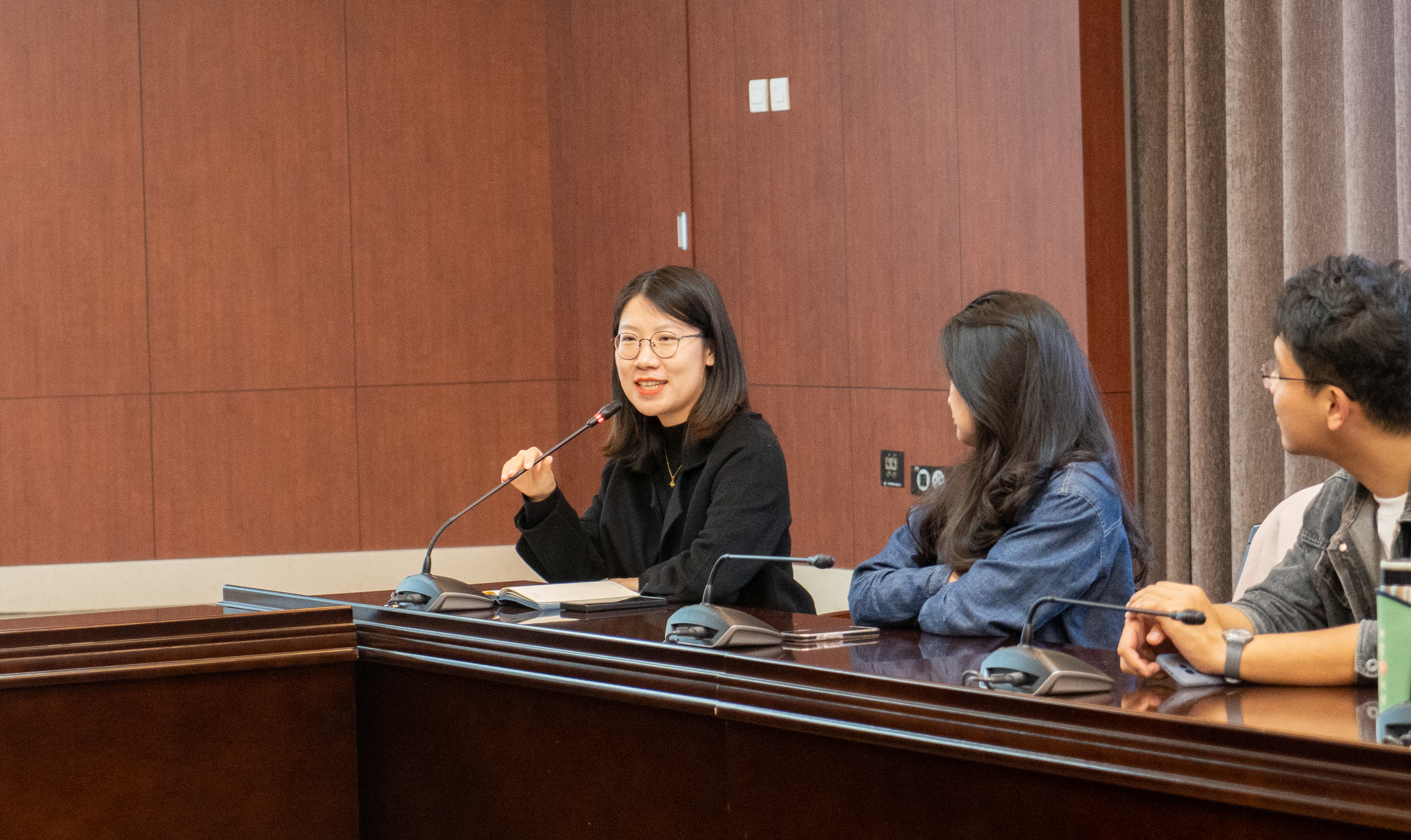 团委负责人马嘉男老师进行总结发言。马老师首先对各位学生干部代表的分享表示了肯定与赞赏,并强调以老带新“传帮带”不断加强团学组织建设。希望团学全体成员强化“学生在前,干部在后”的理念,积极培养大局意识与创新意识,牢牢把握成长锻炼的平台,合理有效安排课余时间,在踏实学习和快乐工作中全方位提升自身综合素质。