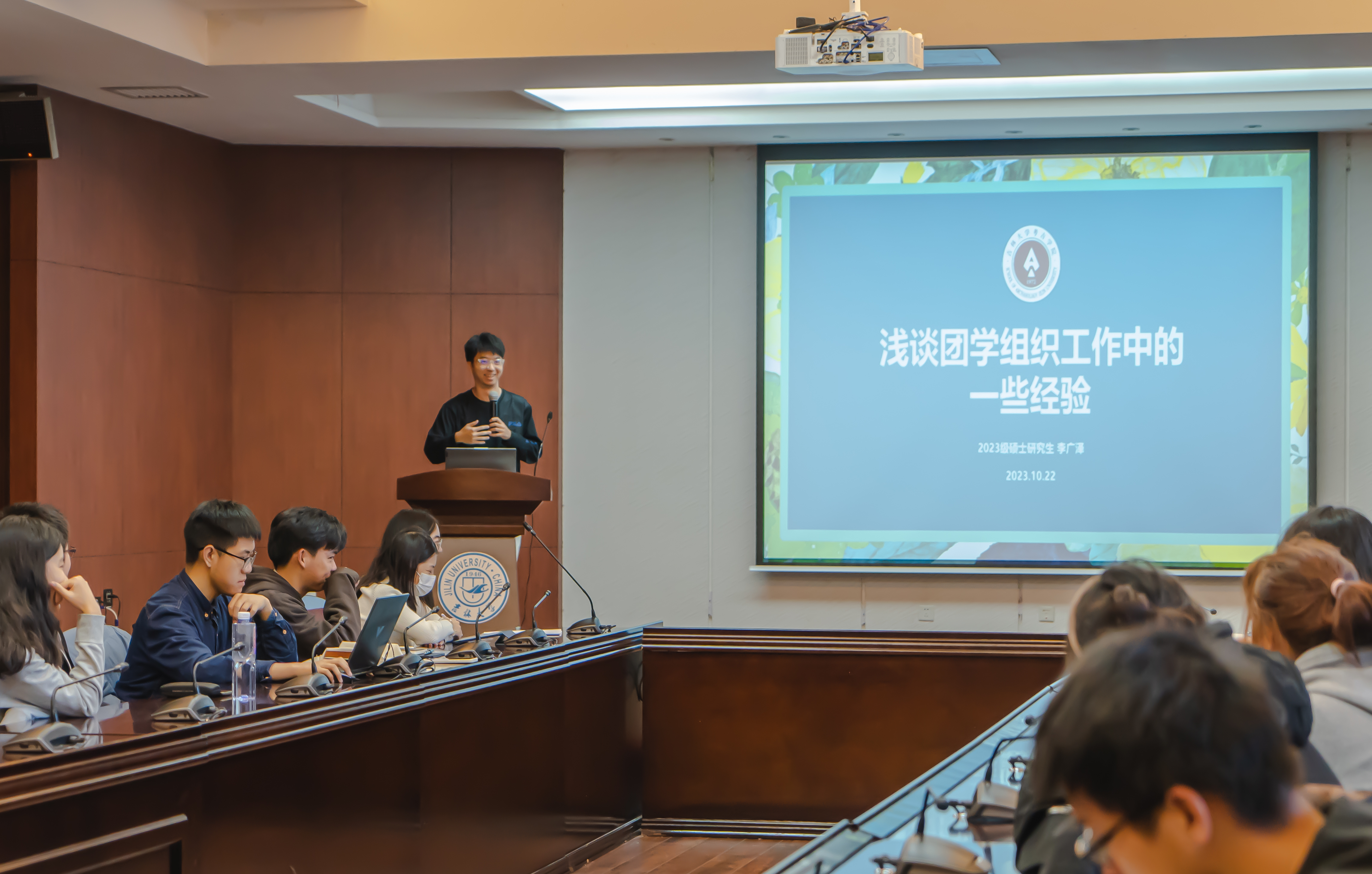 团校于10月22日成功举办开班第一课——团学组织座谈会暨学生干部培训会。本次座谈培训会由团委团校部负责人李肇萌主持,本研优秀学生干部代表何涛、高洁、王克豪、李广泽、耿默兰分别结合自身发展以及团学工作经历,从不同角度与同学们进行经验分享。