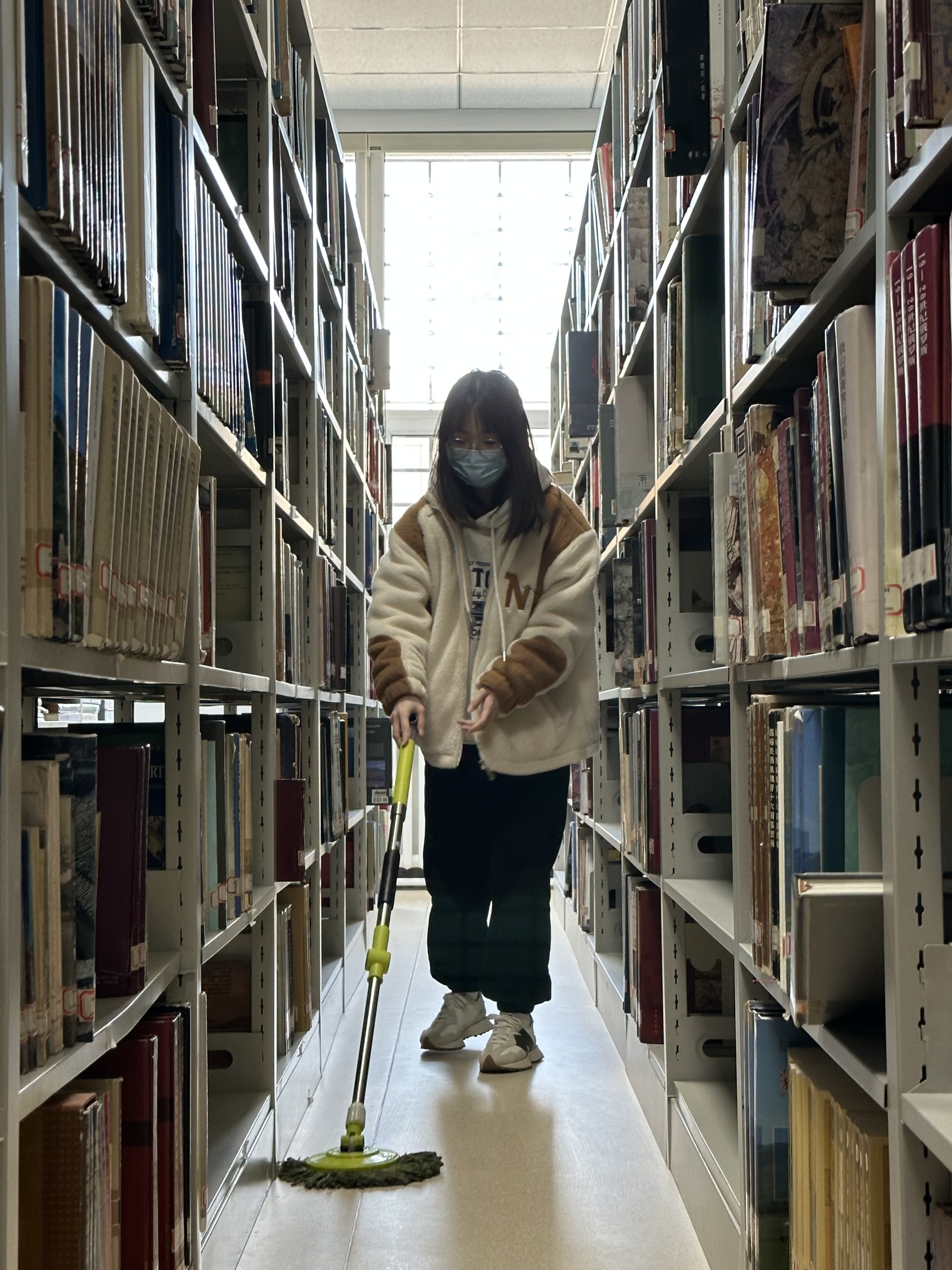 资料室中进行书籍资料整理、室内卫生清洁。该活动旨在以实际行动践行雷锋精神,传递正能量。