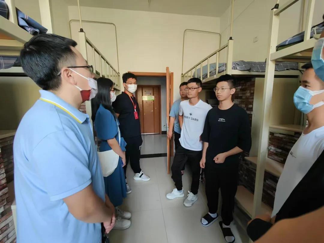 党委书记王巍老师、院长赵宾福老师,与22级辅导员邱泽涵,辅导员助理王克豪、张灵江、张凤怡、禹明岐一同前往北苑学生二公寓和南苑学生二公寓,走访看望了2022级本科新生。