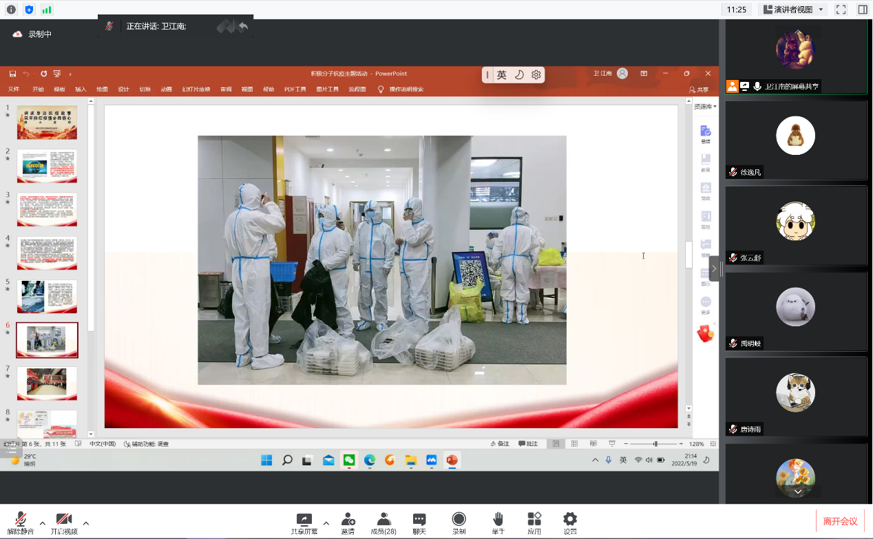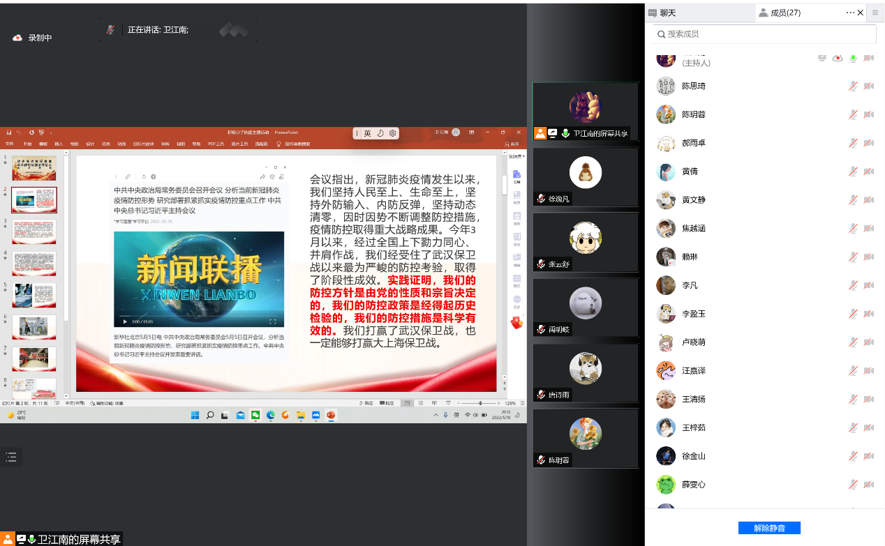 全体入党积极分子参加了此次活动。活动共分两部分,一是深入学习习近平总书记5月5日在中央政治局常委会会议上的重要讲话精神,二是讲述身边的抗疫故事。