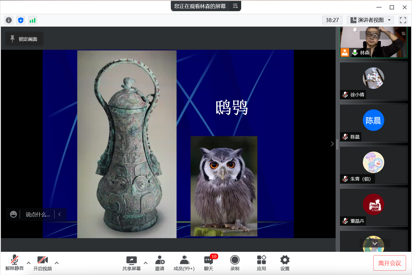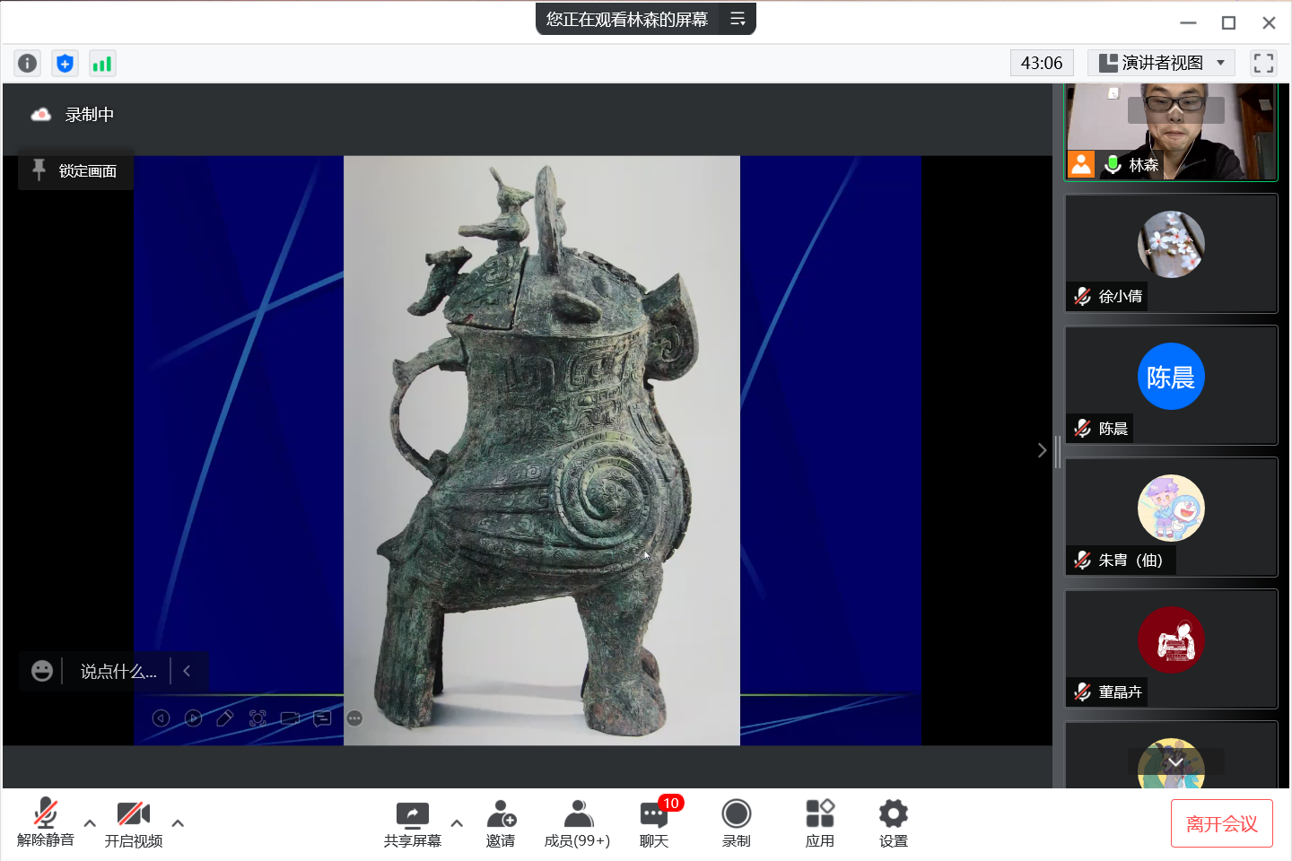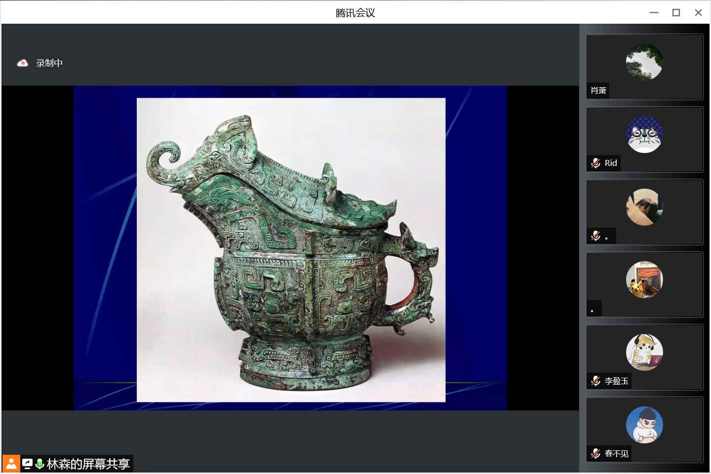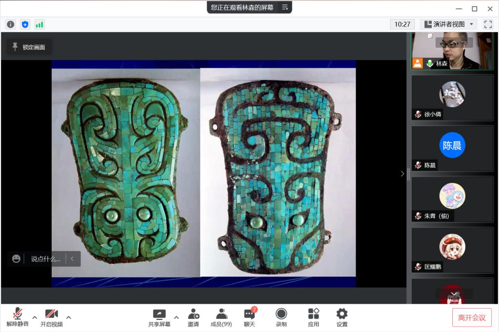 通过这次云学术活动,同学们对青铜器纹饰有了更深入的了解,也对当时动物形象的意义、古人的生活习惯产生了浓厚的兴趣。在静态管理状态下,同学一起学习青铜文明的发展历程,体验青铜器物的艺术之美和文化内涵,既是拓展视野,增长知识的契机,也是培育美感,陶冶情操的过程。相信同学们在此次欢乐“云”学术课堂中学有所乐,乐有所得,培养了良好的探索精神。