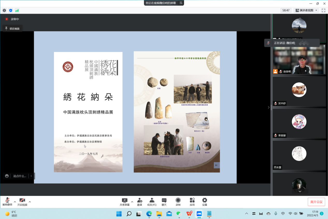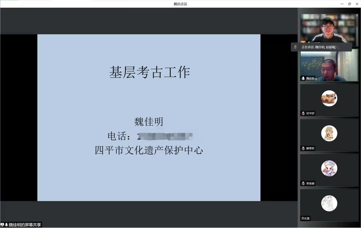 2020级考古班举办了“对话基层文物工作者”线上主题班会,会议邀请了四平市文化遗产保护中心的魏佳明老师作报告,带领同学们深入了解基层文物保护工作状况,拓展同学们对文物保护职业的认识。会议由班主任赵里萌老师主持,辅导员马嘉男老师以及2020级考古班全体同学参加了此次会议。