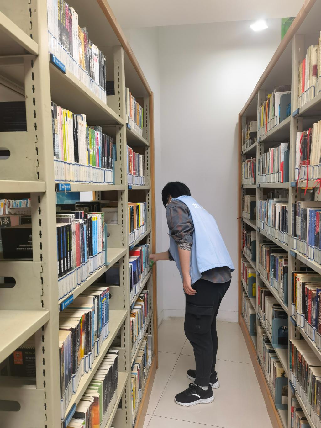刘含饴同学的第一个体悟是,在图书馆的志愿服务,大部分时间都是做管理和引导工作。除去临近年关的2天外,每一天的每一小时,都有读者来阅读或者寻找书籍。因为图书馆的签到系统升级,从最初的扫健康码刷图书卡变到了现在绑定人脸刷身份证,读者还在适应期,时常会有不清楚操作的读者从侧门没有刷卡就进入。还有读者没有提前进行网上预约就要进馆借书。虽然有两位图书馆老师在岗,但也不能保证管理无漏。此外,一些老年读者对自助借还机的适应性不佳,需要手把手一步步地进行教学,才能学会使用。而且,还有很多新来的读者,并不熟悉馆内图书排架的顺序,不能做到自助找书,需要在岗人员帮助查找。很多时候,这些事是同时发生的,这就需要刘含饴一边全神贯注协助读者查找借阅图书,一边帮助图书馆的老师减轻管理压力。