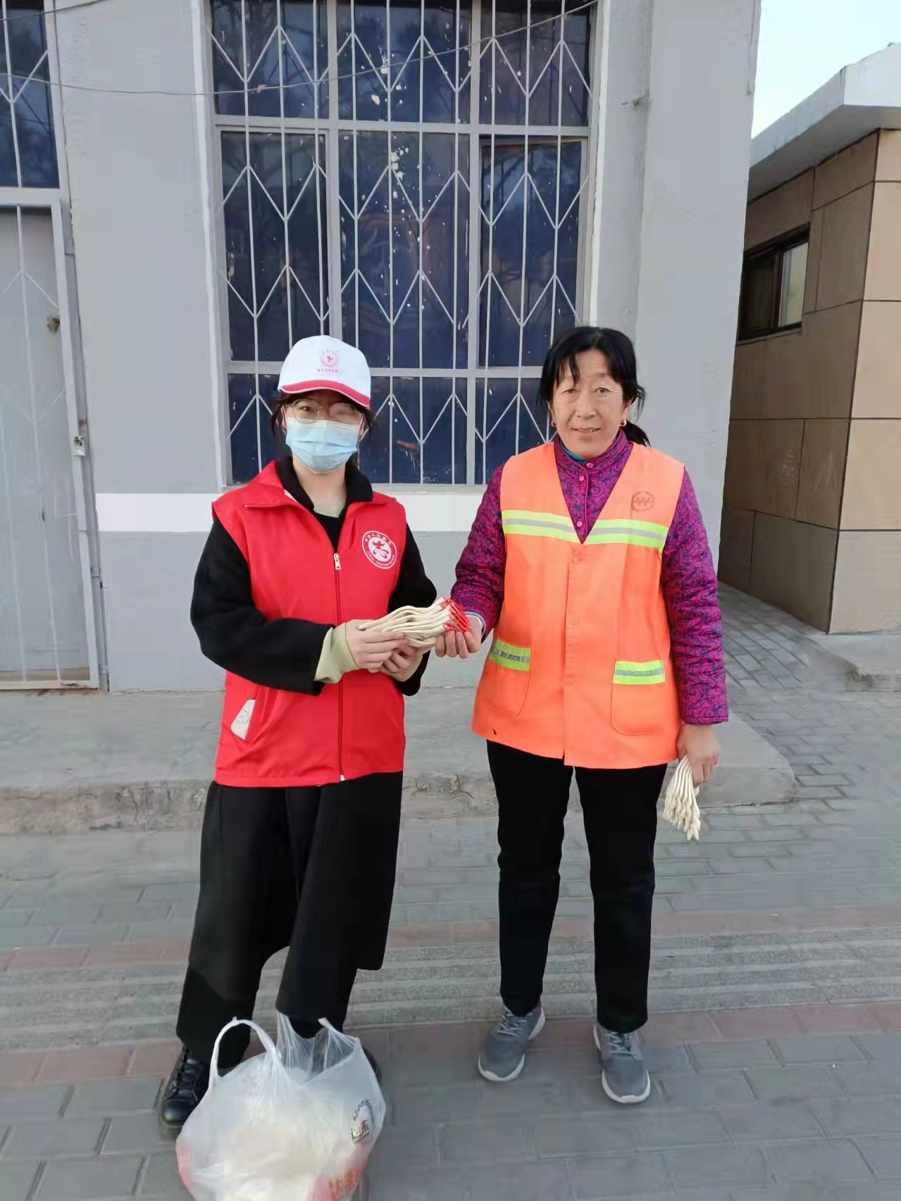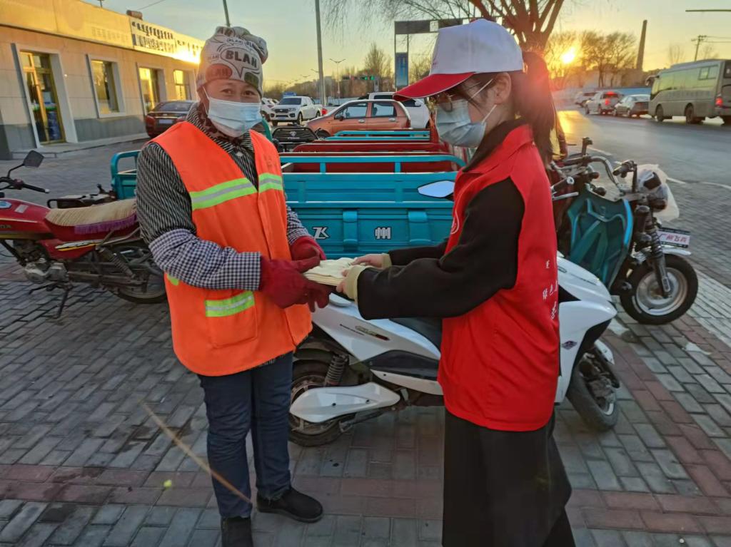 随后的时间里,李丹同学参加了一系列主题志愿活动。1月17日,参加团旗委组织的“返家乡 青实践 送温暖”活动,慰问环卫工人,为他们送上手套,表现了对一线环卫工人的感谢与诚挚敬意。1月19日,组织并参加2022年苏里格社区“我们的节日·春节”“佳节尚文明 志愿关爱行”主题活动,帮助独居老人擦玻璃,为老人们送上新年的祝福。1月20日,组织并参加2022年苏里格社区“建设建康家园 共享健康佳节”主题活动,派发宣传单,宣传健康观念,进行环境整治,为家乡的绿色健康环境做贡献。1月27日,同社区工作人员入户宣传“智治乌审”平台,让社区居民能够更便利地与网格员沟通,并简要宣传过年相关防疫知识。1月28日上午,组织参与2022年苏里格社区“挥毫写春联 红火送祝福”“我们的节日·春节”系列活动,给社区居民分发春节对联,年历等,并同社区工作人员一起为社区贴对联,挂灯笼,在社区营造了浓浓的过年氛围。1月28日,参与2022年乌审旗大学生寒假“返家乡”社会实践活动分享交流暨表彰大会,全体实践队员分享了实践心得与收获,通过交流,受益匪浅。