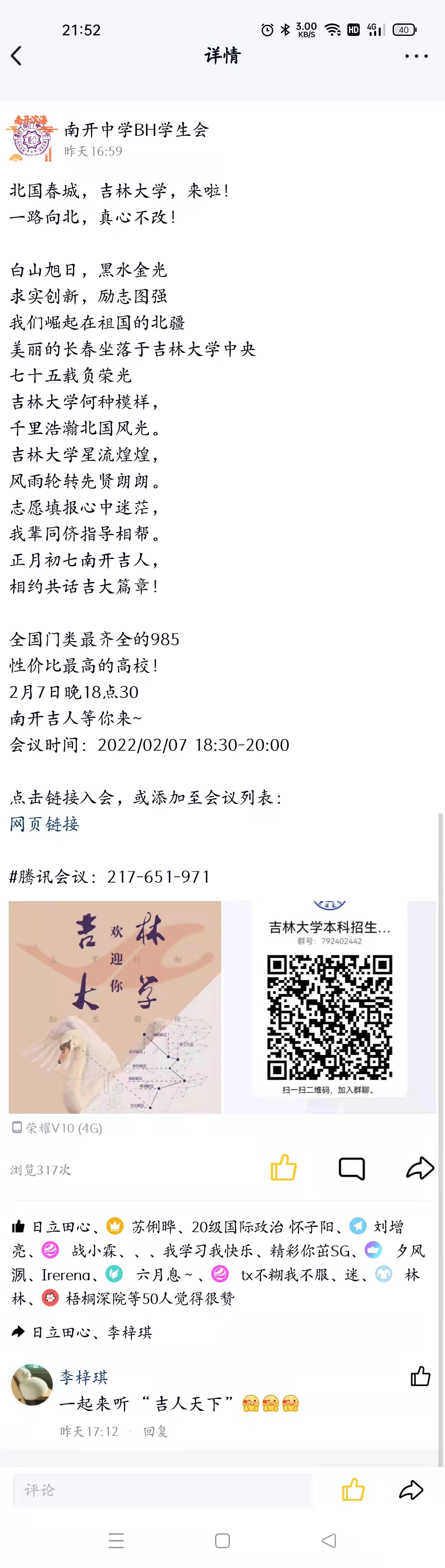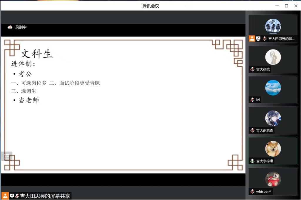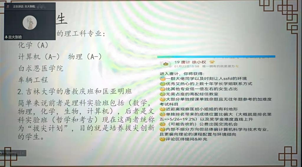 的基本情况向母校在读的学生和其家长进行了宣传和讲解。受到天津疫情的影响,这次宣讲他们选择了通过腾讯会议,进行线上宣讲。