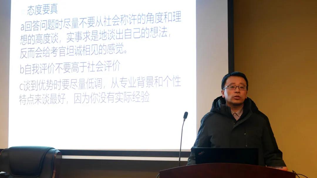 邀请吉林省委党校社会学教研部副主任、社会工作专业硕士生导师、吉林省深化医改研究专家库成员、吉林省民政厅、吉林省人力资源和社会保障厅政策风险评估专家都业明副教授,在匡亚明楼第一报告厅为研究生进行“如何提升公考竞争力”的就业指导专题讲座。