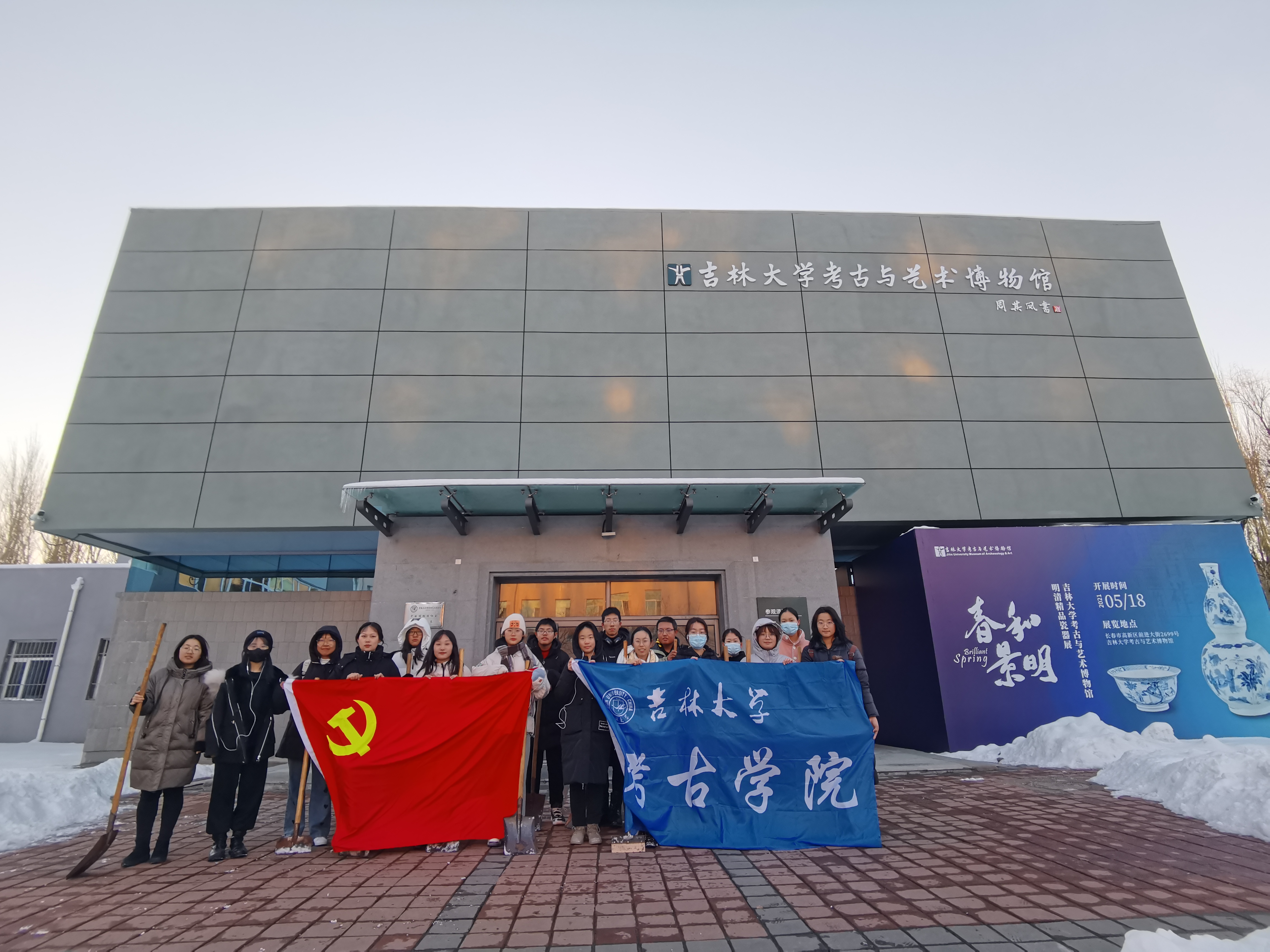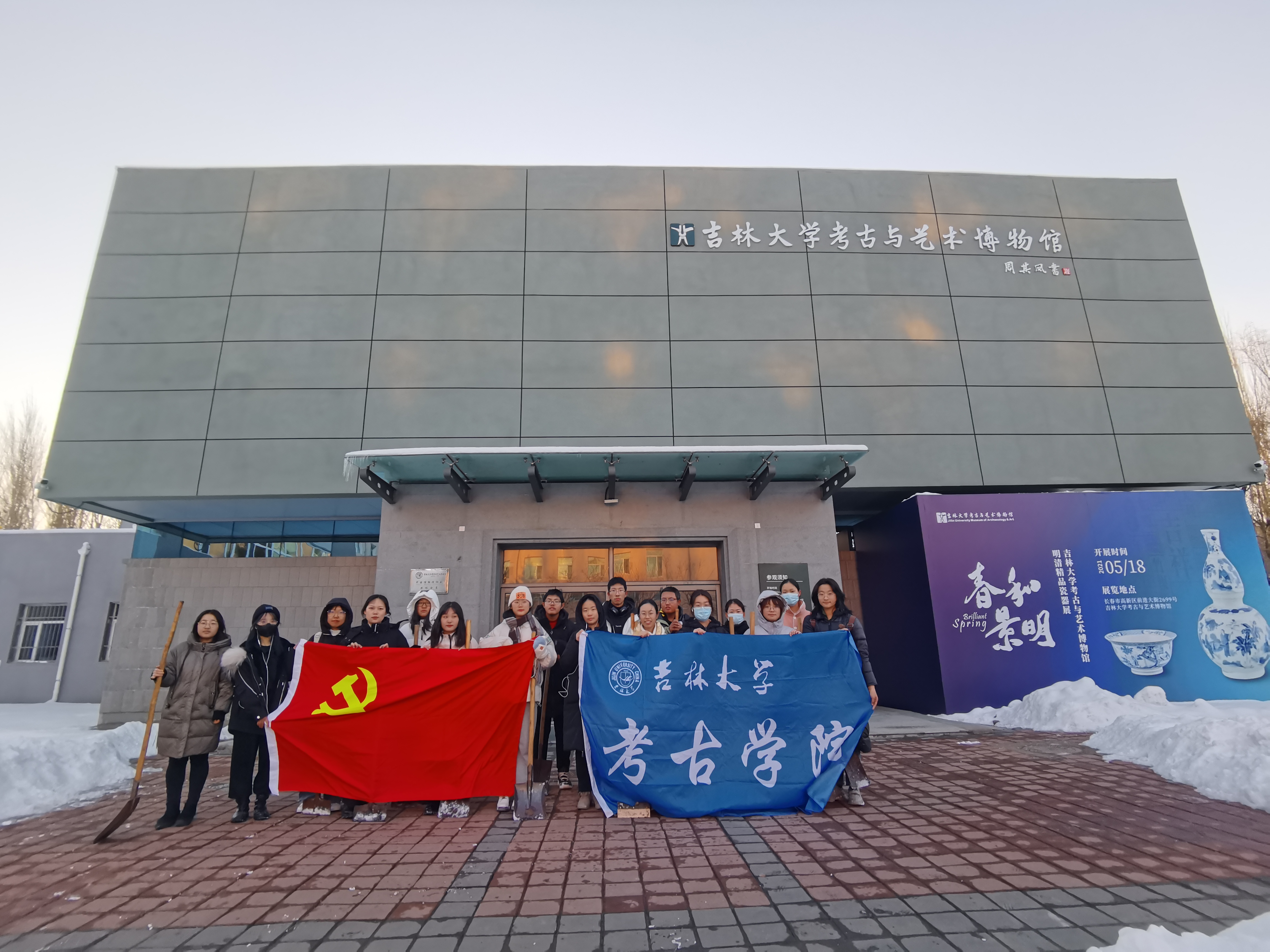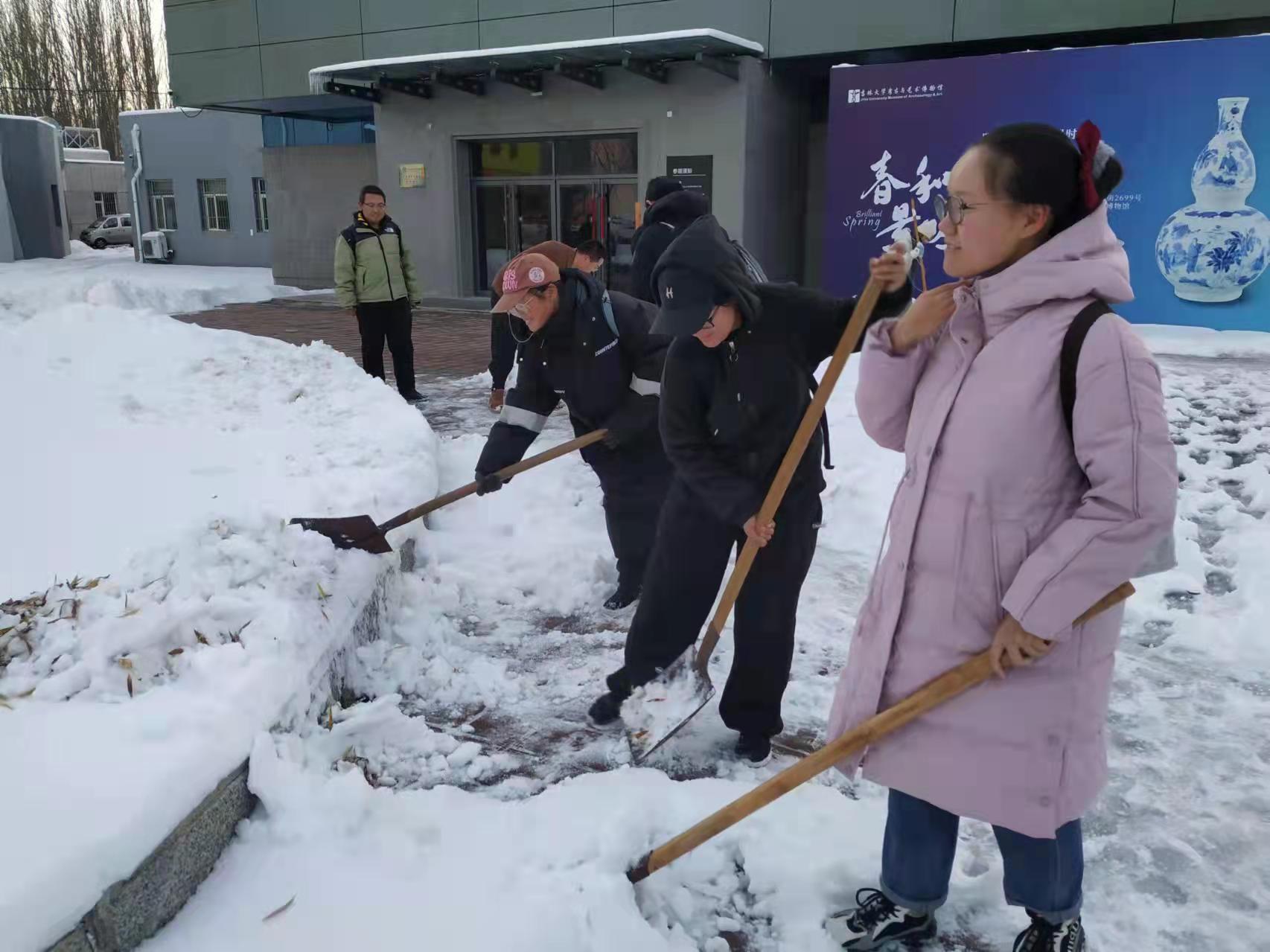 本科生党支部全体入党积极分子集合于考古与艺术博物馆前,开展了清扫积雪和除冰活动。