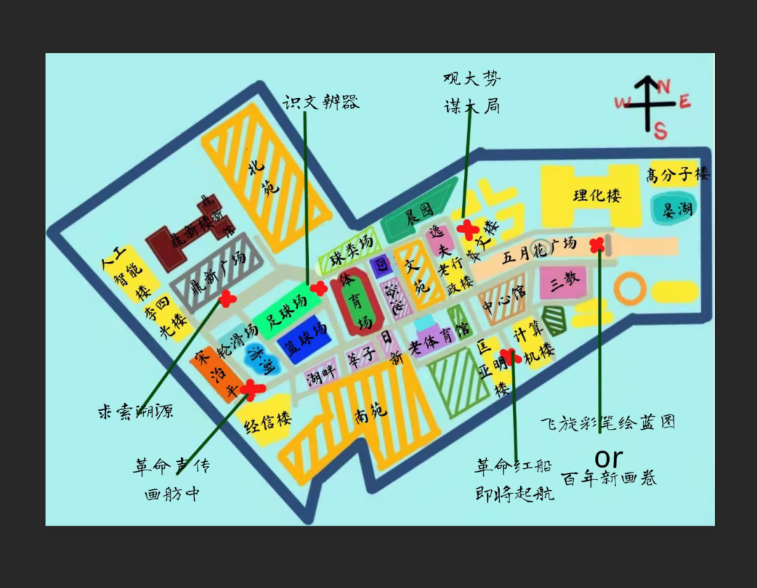 文物爱好与保护者协会、团委和学生会从前期准备策划到后期实施宣传等各个流程,通力协作、大胆创新、不懈努力,保障本次“百年考古百年党”定向越野活动得以成功举办。