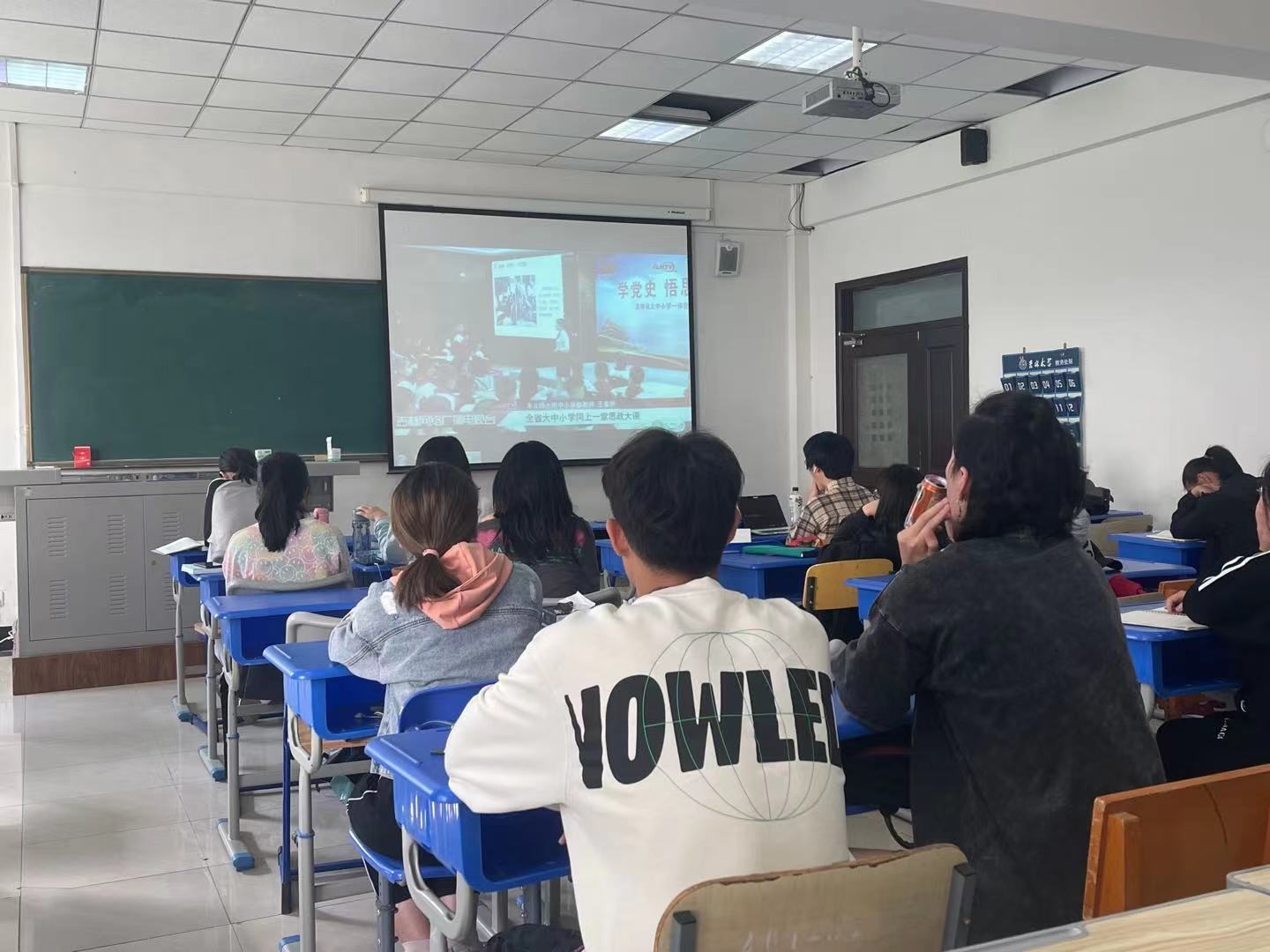 2020级文博班全体同学于9月14日下午,在经信教学楼观看了由吉林网络广播电视台直播的,吉林省大中小学一体化党史学习教育思政大课。
