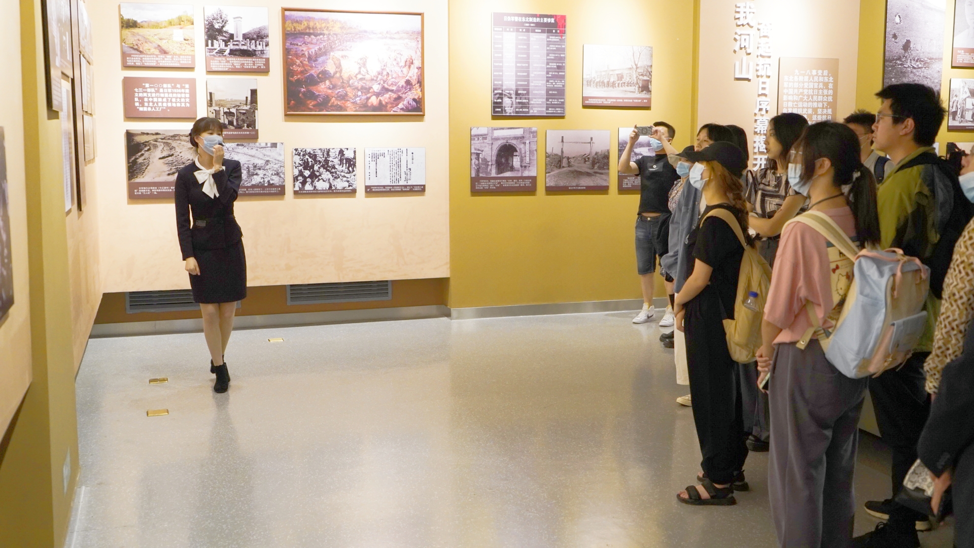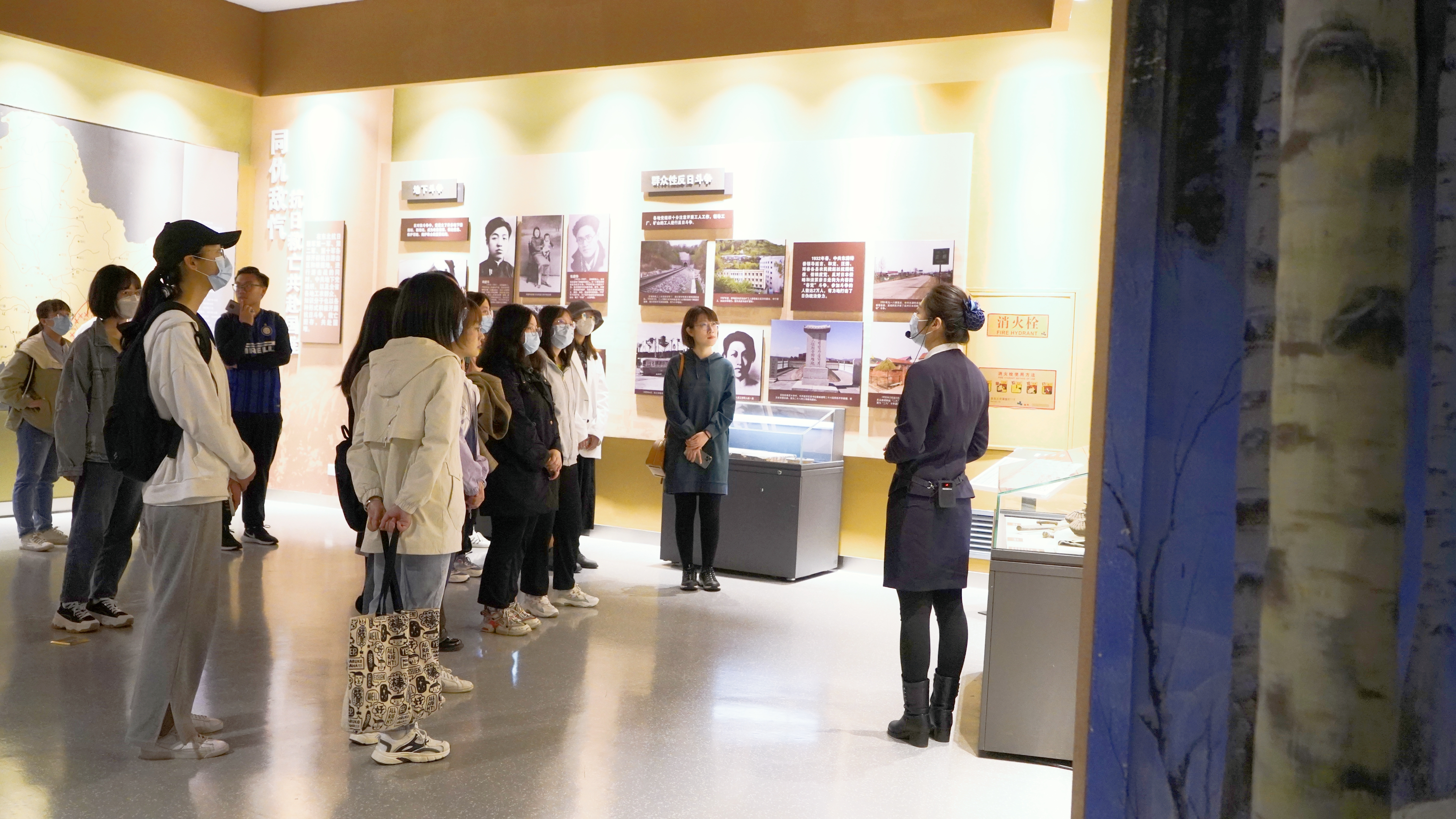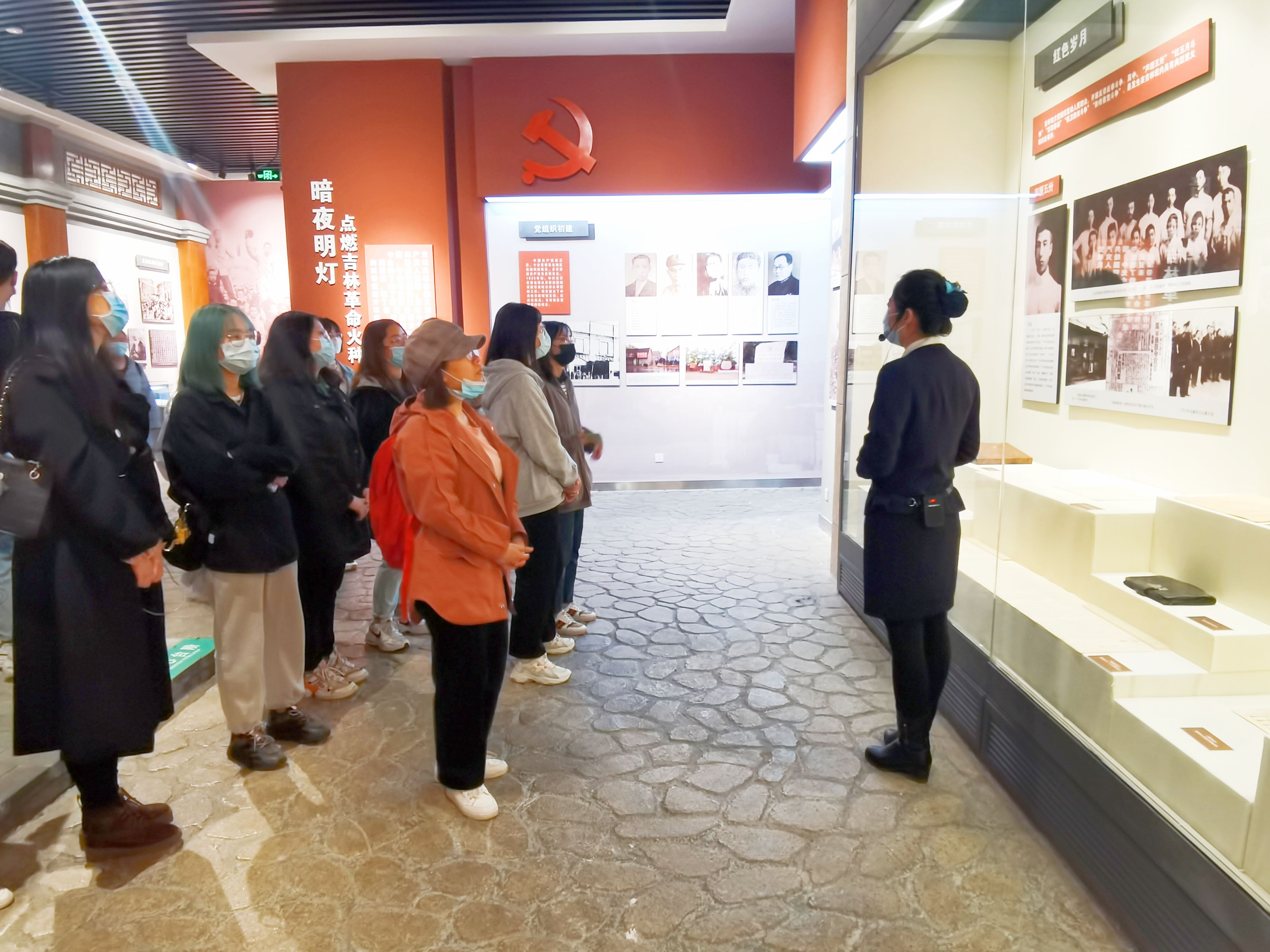 黑云翻墨,白雨跳珠。同学们首先参观了工笔花鸟画展、陶瓷艺术馆、吉林省非物质文化遗产展等,体验了有趣的东北地域文化,欣赏了细致精美的书画瓷器。随后在博物馆讲解人员的带领下,参观了吉林人民革命斗争史陈列——破晓,晚清时期,内忧外患,反抗压迫成为吉林人民斗争的主旋律;民国伊始,国运衰微,吉林“小南开”成为觉醒先锋;日本侵华,东北沦陷,吉林人民遭受长达14年的殖民统治;中共号召,联合抗日,吉林人民用游击战争打压了侵略者的嚣张气焰,最终取得抗战胜利;百炼成金,浴火重生,中共解放吉林,白山黑水,换了人间。松水奔流,前浪翻涌,后浪磅礴。那些年,先辈们积极探索,救亡图存,唤醒了民族意识的伟大觉醒。他们播撒火种,宁折不弯,高举人民当家作主的大旗,终于星星之火,可以燎原。