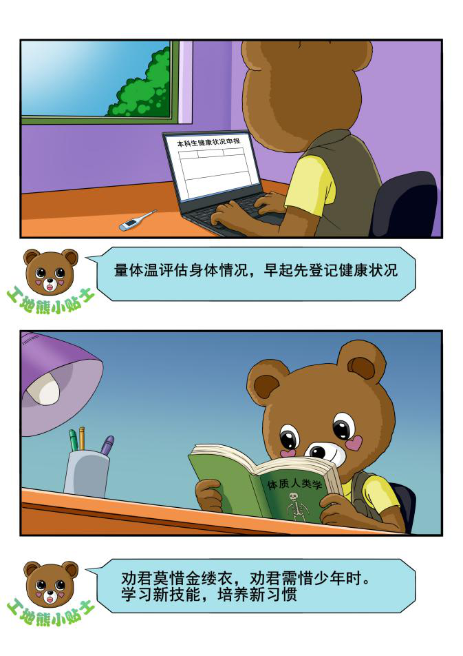 各团支部围绕青年学生踊跃投身建设祖国的伟大成就、不畏艰险抗击疫情、决胜全面小康、决战脱贫攻坚等主题,制作了相关海报6张,编辑绘画工地熊抗疫漫画,并依托极速飞艇