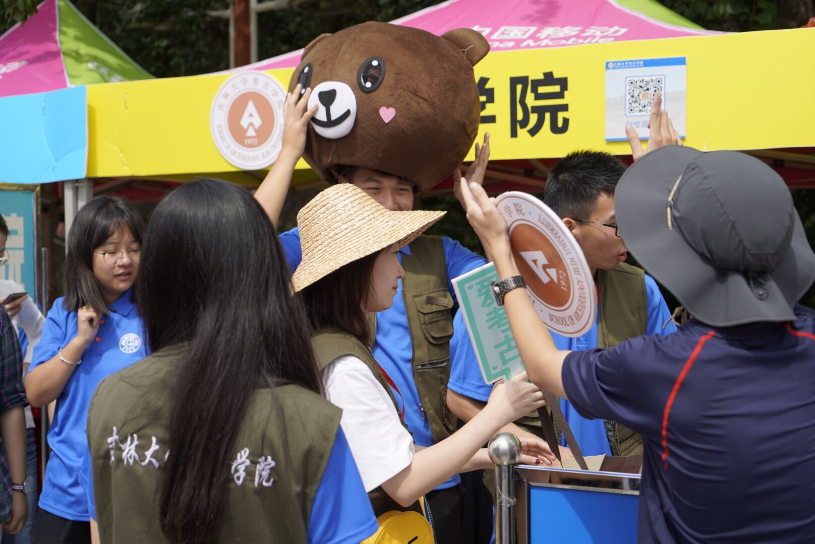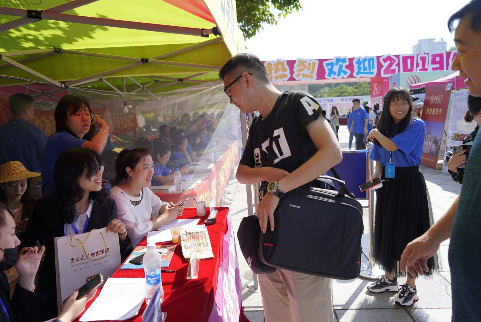 当天上午,迎新志愿者们在大本营接待极速飞艇