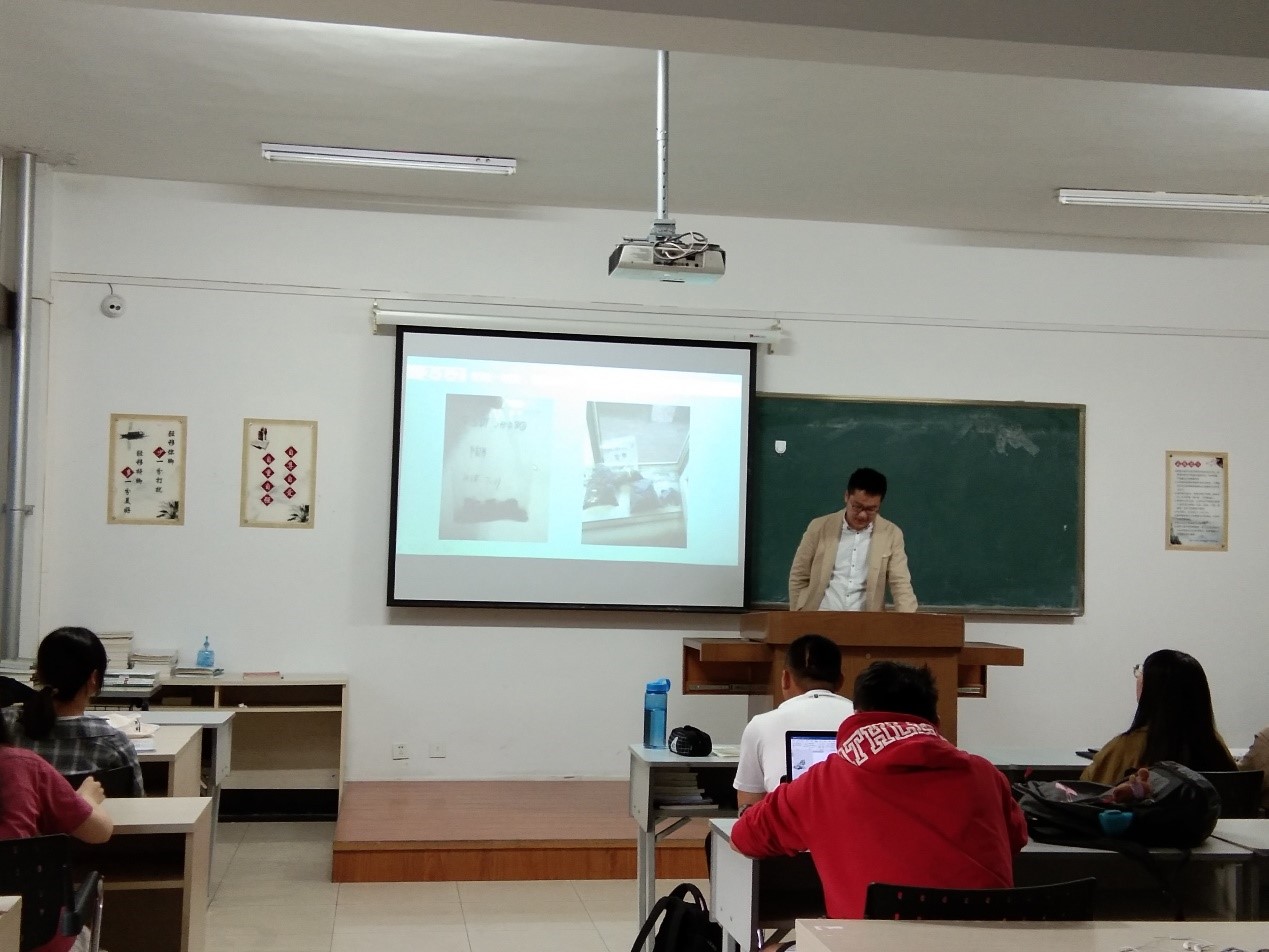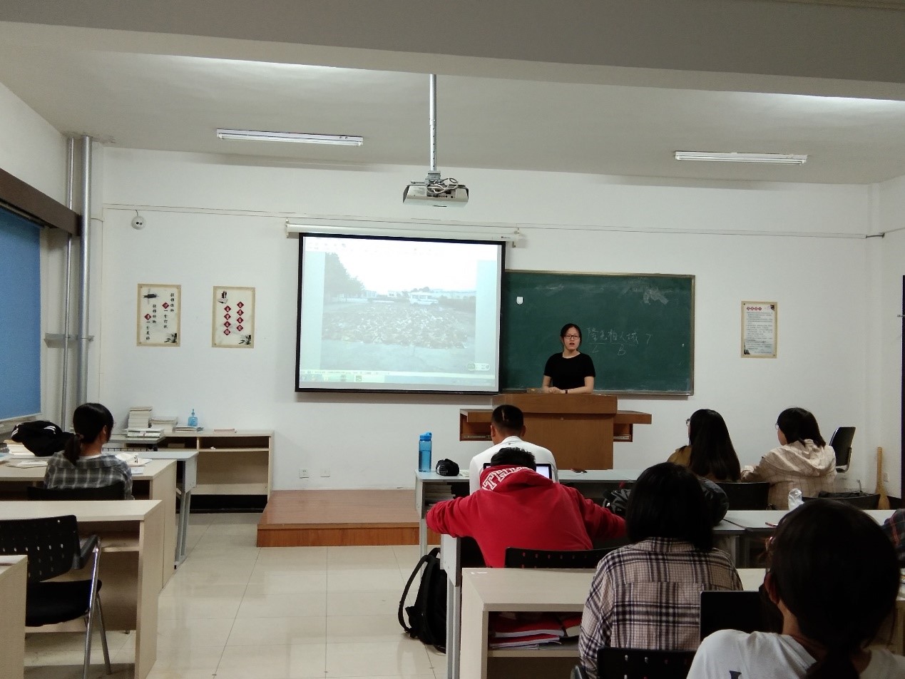 中心校区经信教学楼A107教室举办田野实习经验分享会,主要内容是由来自不同实习工地的2016级学生分享田野实习经验,2016级学生赵思旻、孟祥悦、任禹莹以及2017级、2018级部分学生参加。