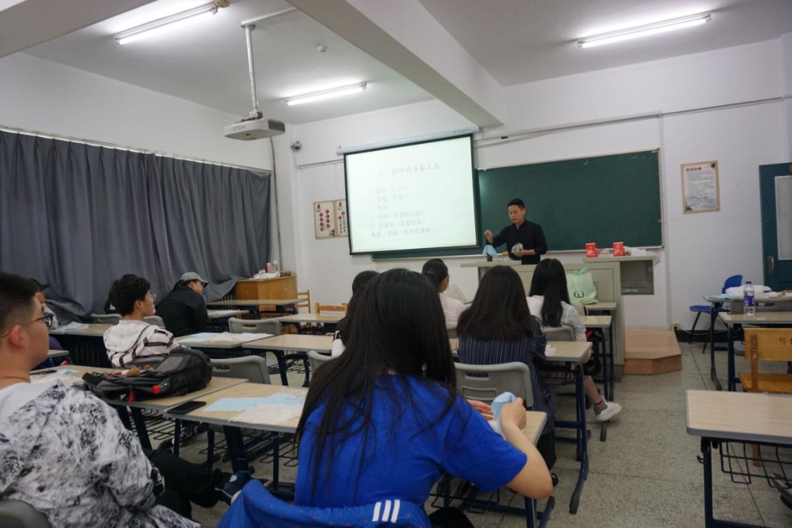201905190845分,文物爱好与保护协会举办的拾粹拓青主题拓片制作体验活动于逸夫教学楼117教室正式开始。本次活动的主要内容是拓印技法的介绍与体验,来自多个不同专业的30余名同学参加了此次活动。