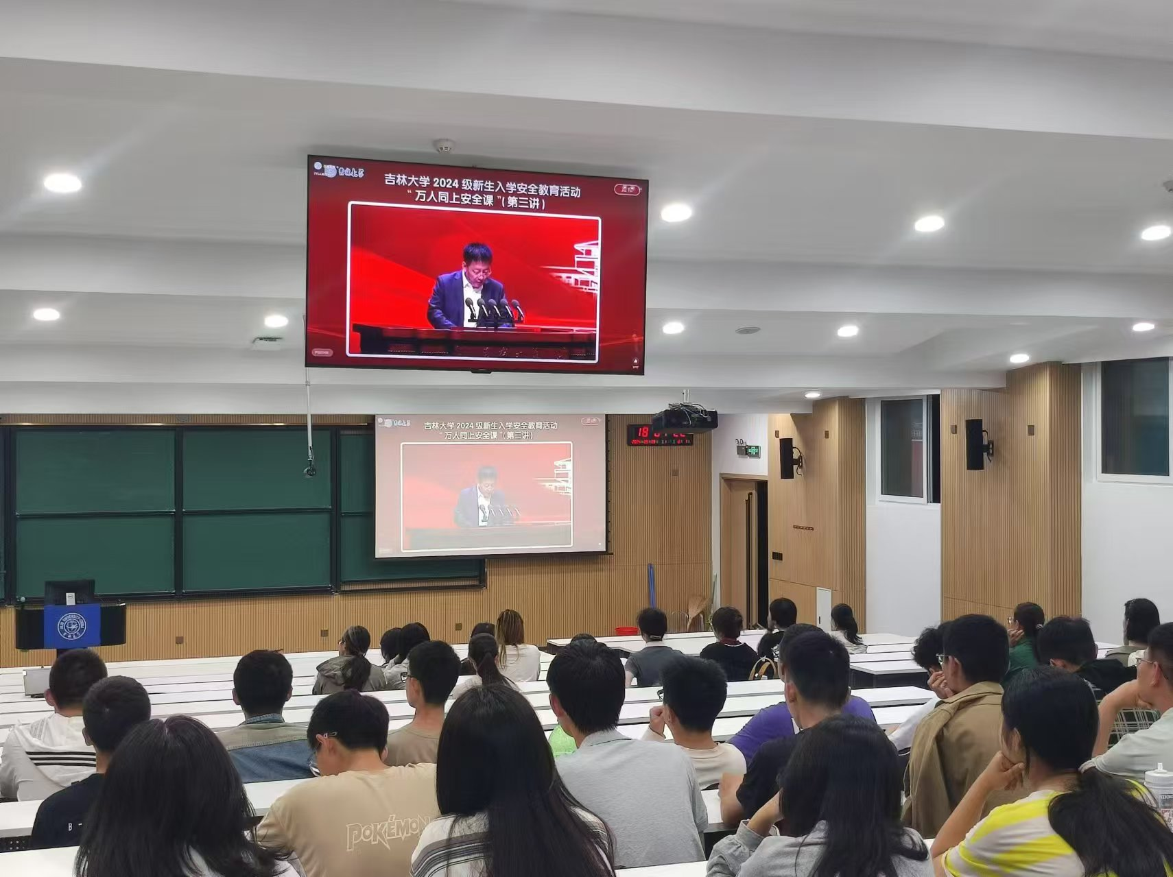 全体2024级本科生在敬信楼第四阶梯教集中收看“万人同上安全课”第三讲,讲座由生命科学极速飞艇