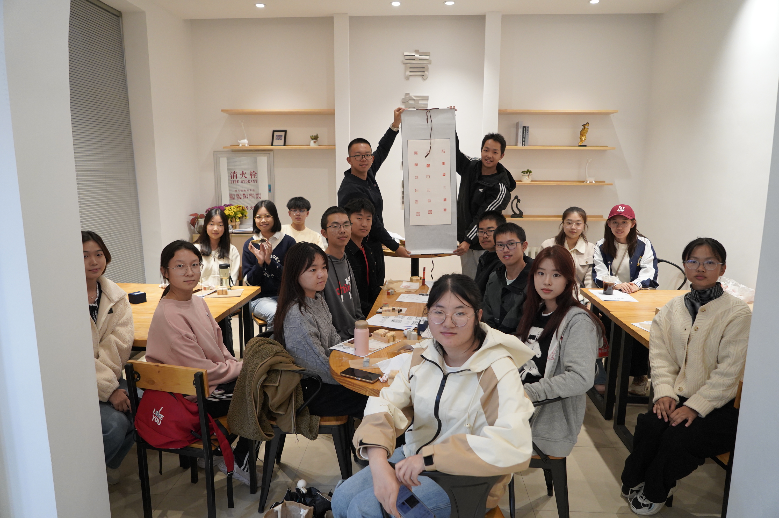 随后,郭同学进行篆刻技艺现场教学,并指导示范,让每位参与者深刻体会到篆刻艺术的魅力。在掌握了基础的篆刻技能后,同学们开始挑选祝福祖国繁荣昌盛的篆刻内容,沉浸式体验篆刻技艺。经过一番精心雕琢,同学们完成了各自的篆刻作品,将其印在卷轴之上,尽情表达着对祖国母亲的深切热爱。