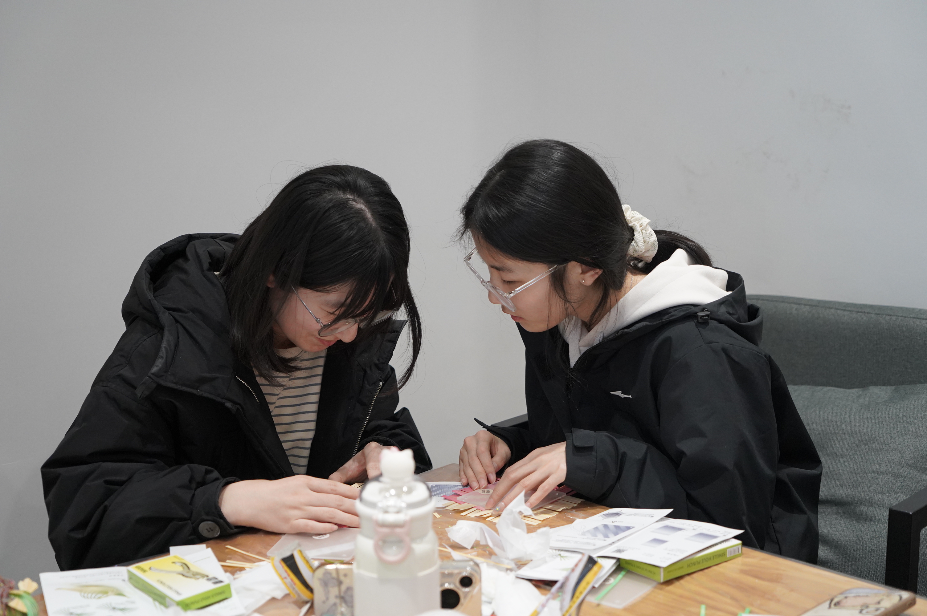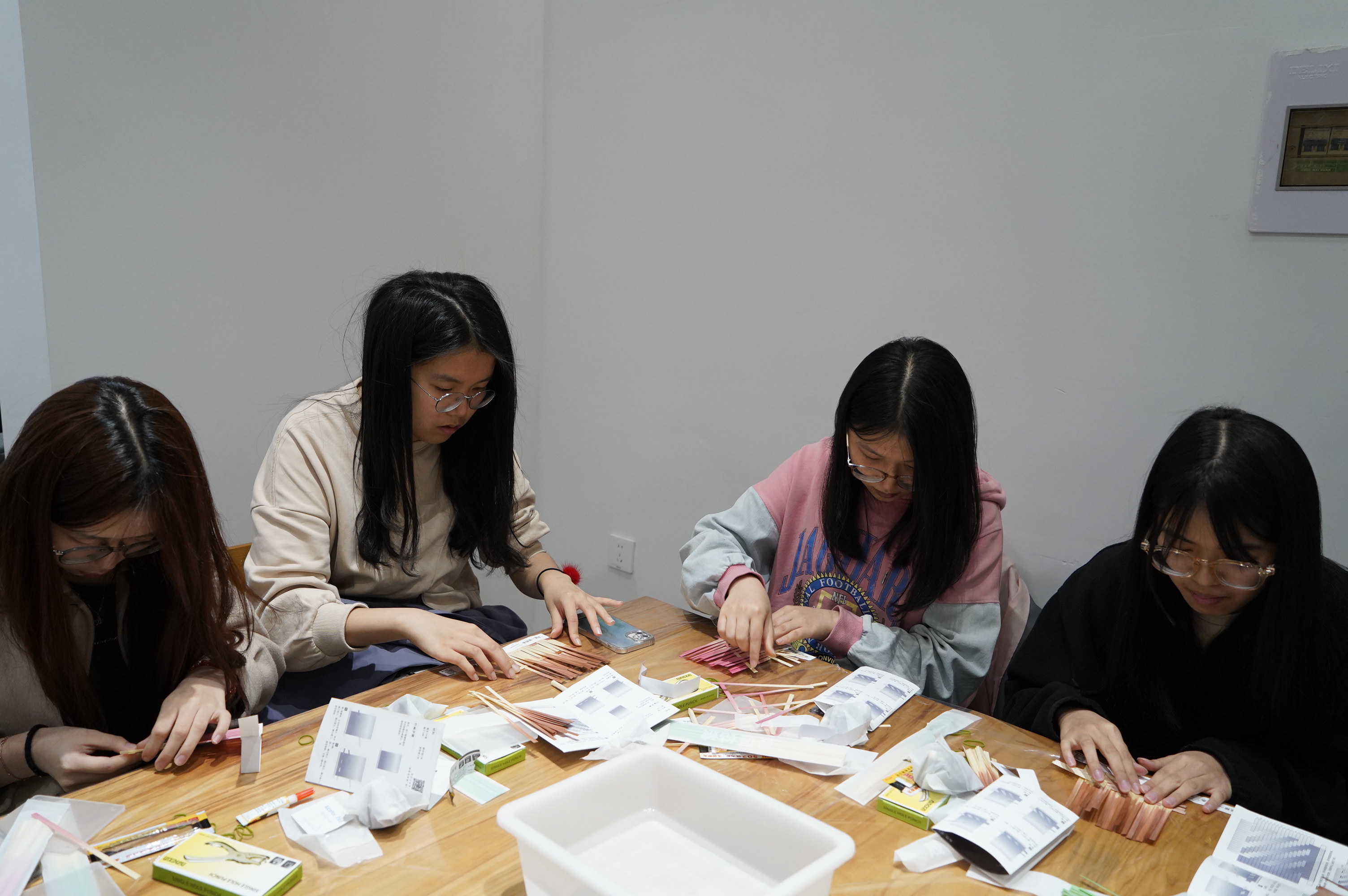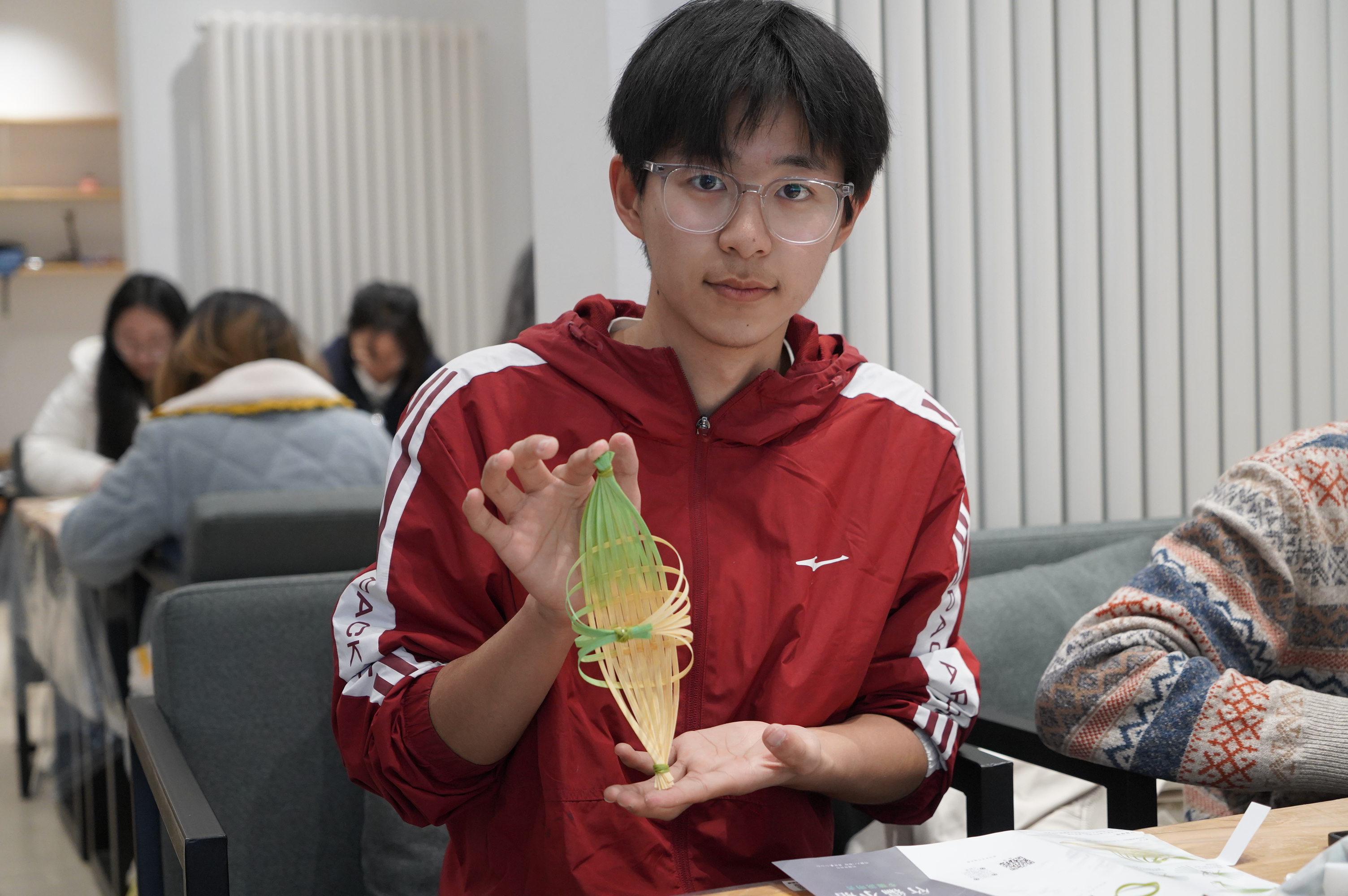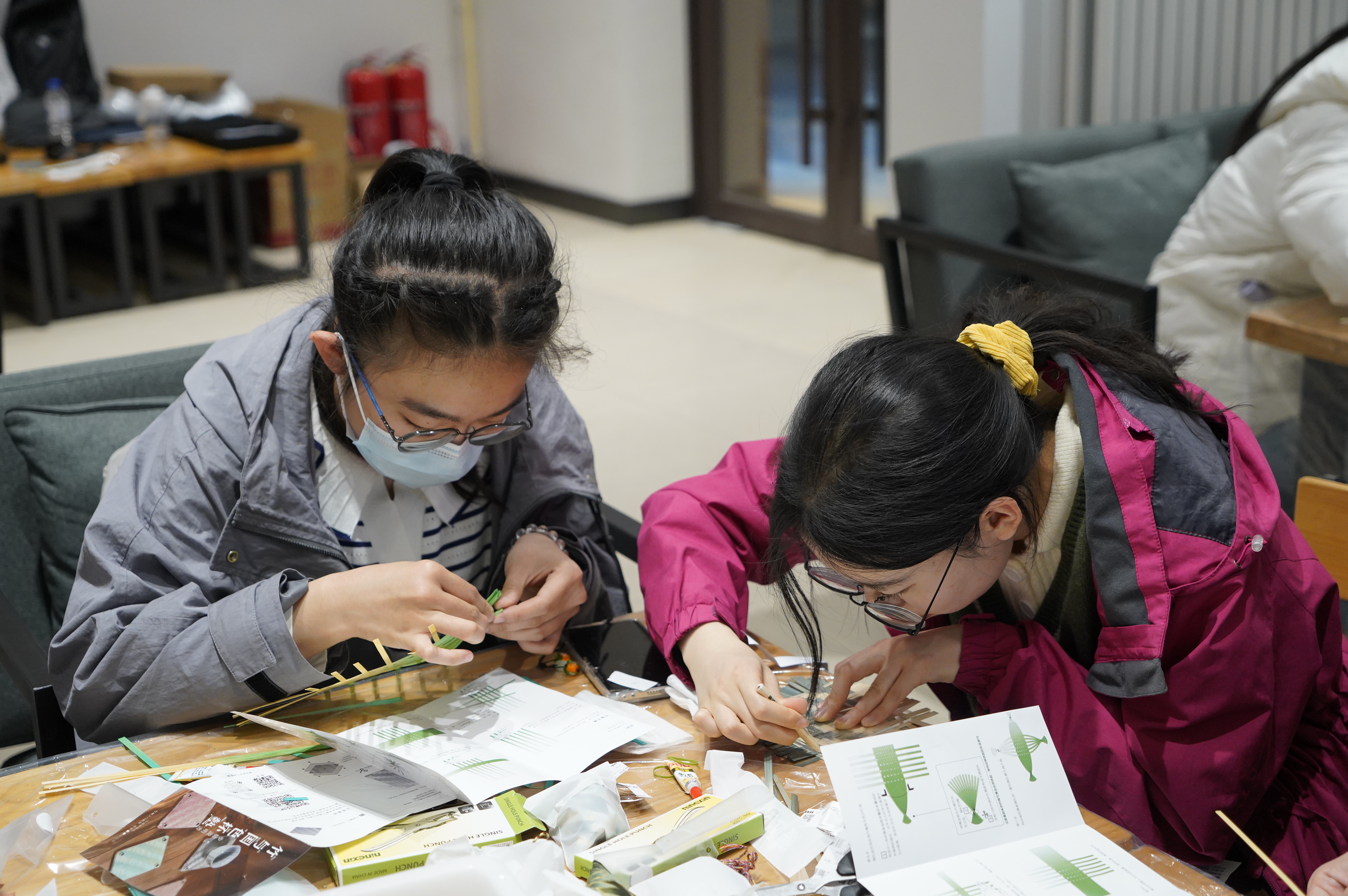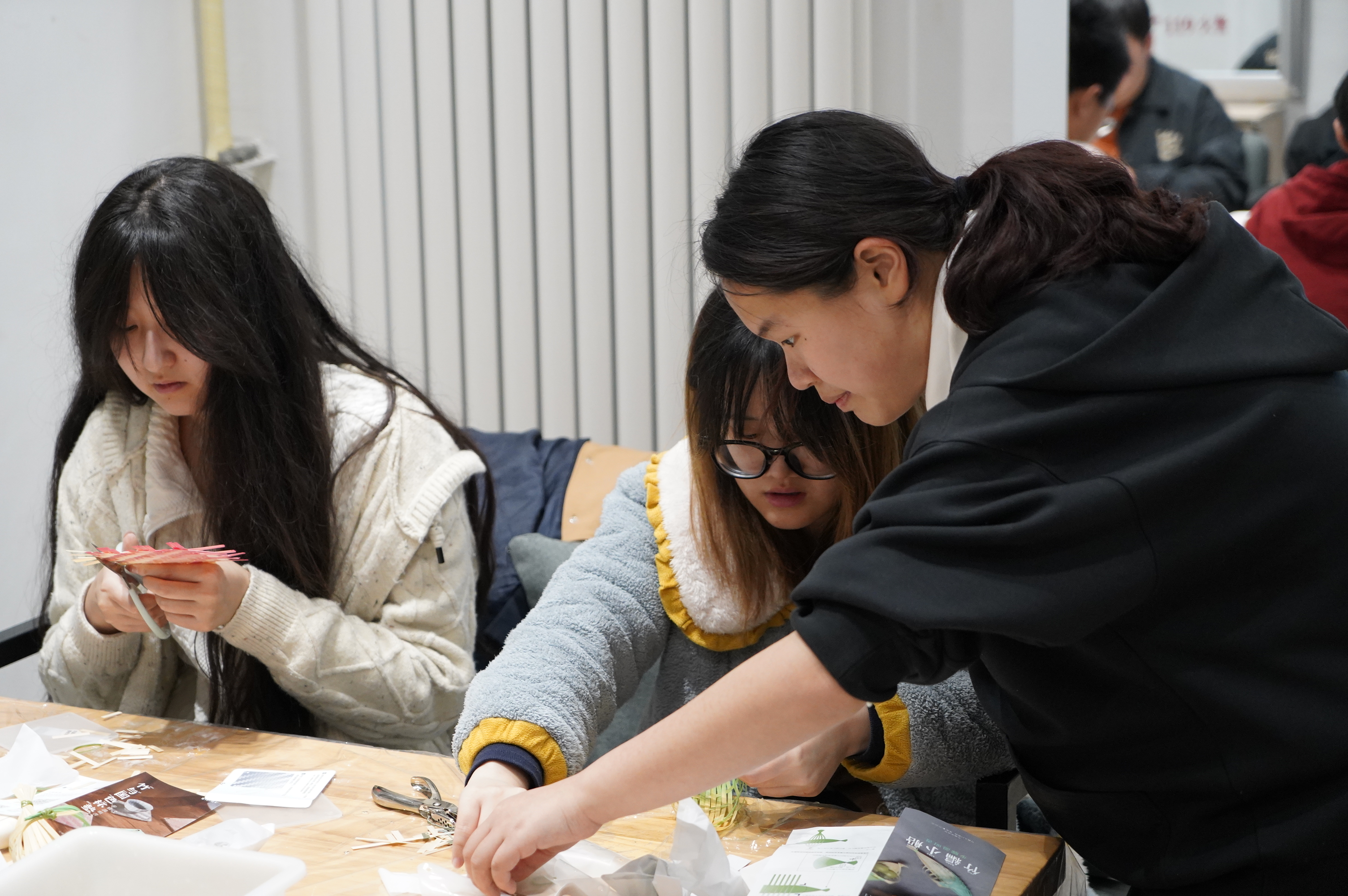 在现场志愿者的引导下,同学们纷纷投入到竹编杯垫和竹船的制作中,在动手操作中感受着非遗文化的魅力。