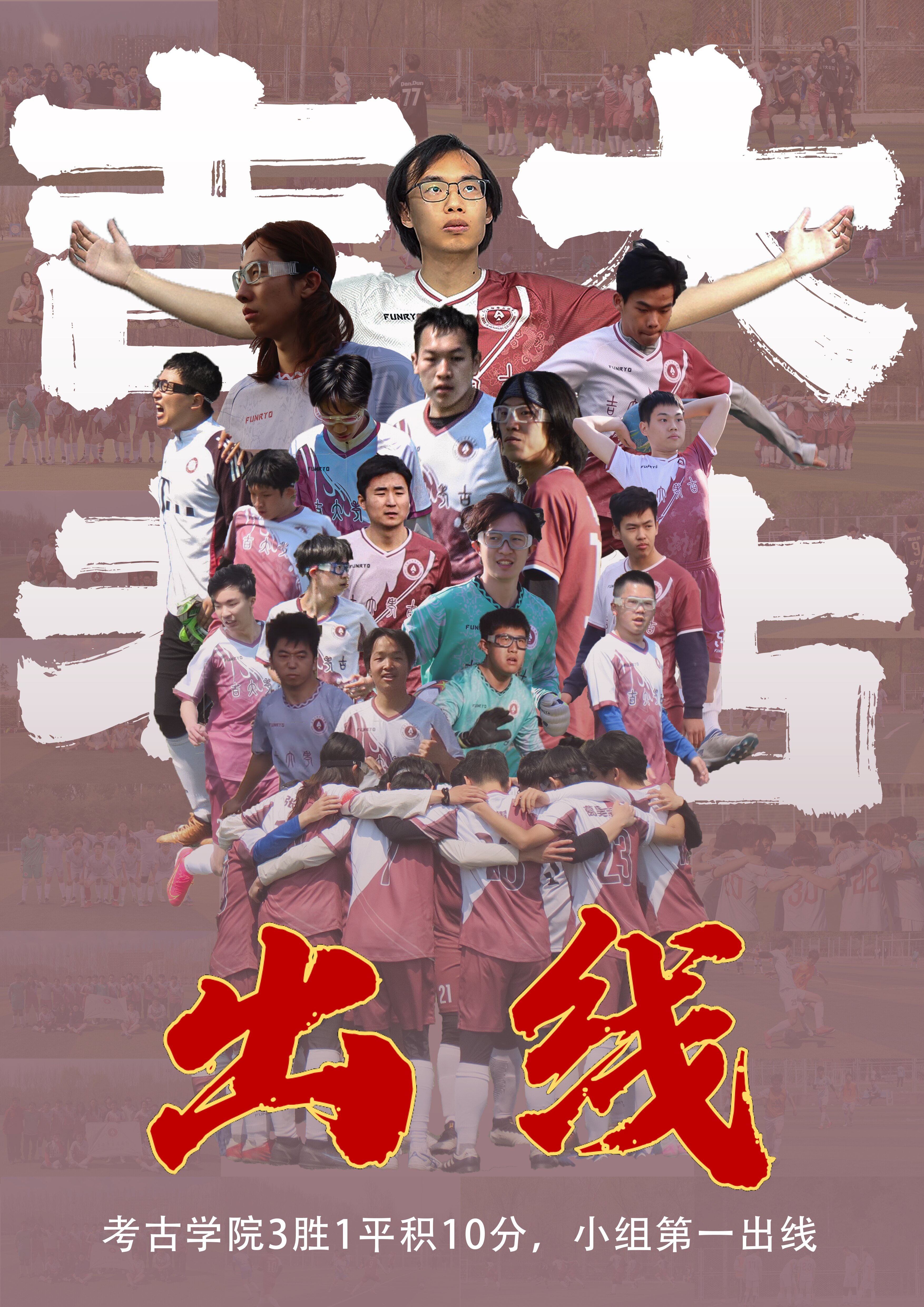 成立于2019年的考古足球队,已经走过了6年。6年来,这支球队曾经因为种种原因一度陷入谷底,但在一场场比赛中不断历练,稳扎稳打,终于在2025年院系杯乙组比赛中以小组头名出线,闯入八强,创造队史。