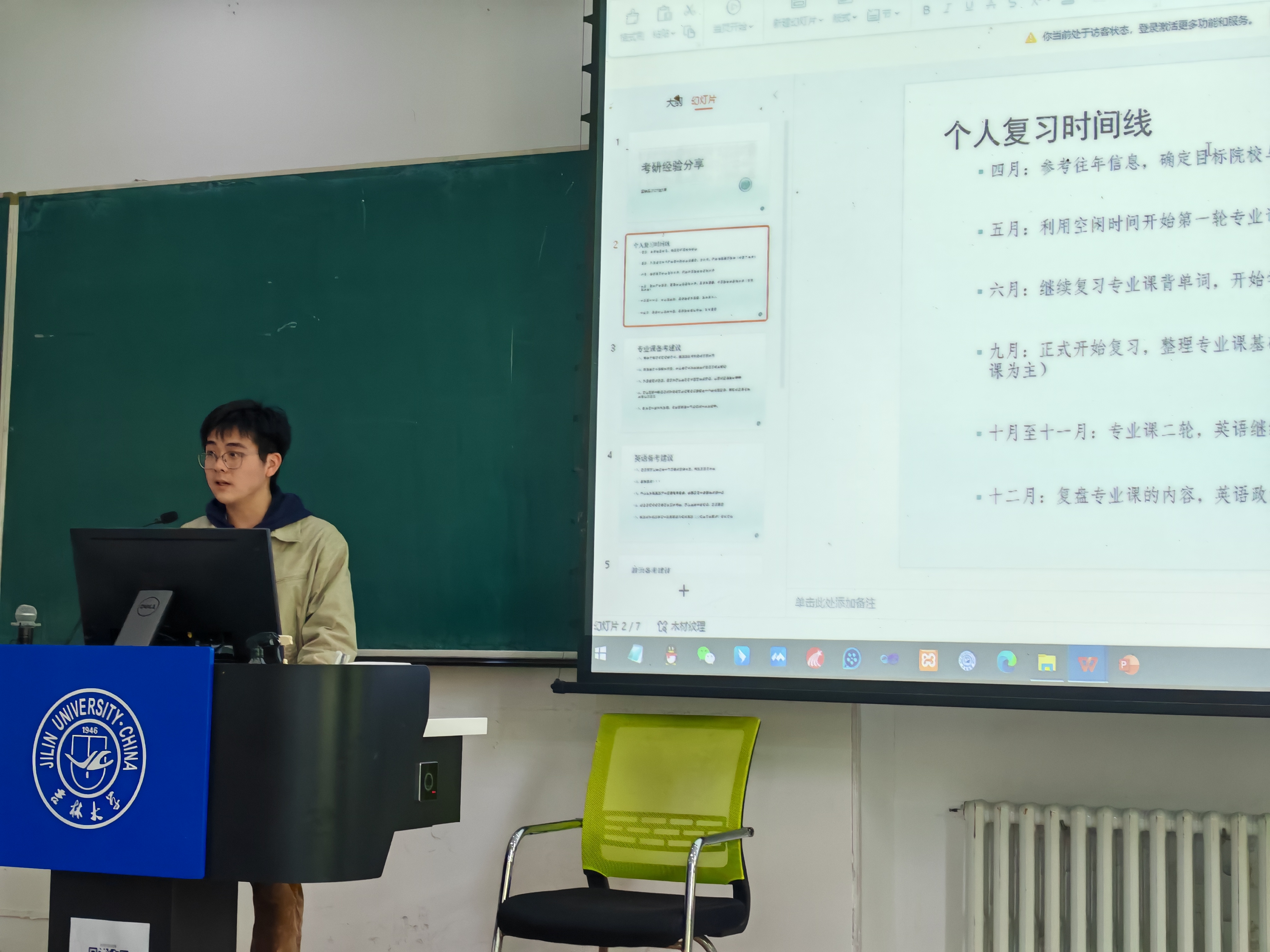考古学专业的王东元,他系统梳理备考时间线,强调专业课需构建知识框架,其余科目需注重错题整理,建议合理划分学科复习时间,定期复盘学习效果。王东元的分享言辞恳切,介绍细致,引得同学们频频点头。