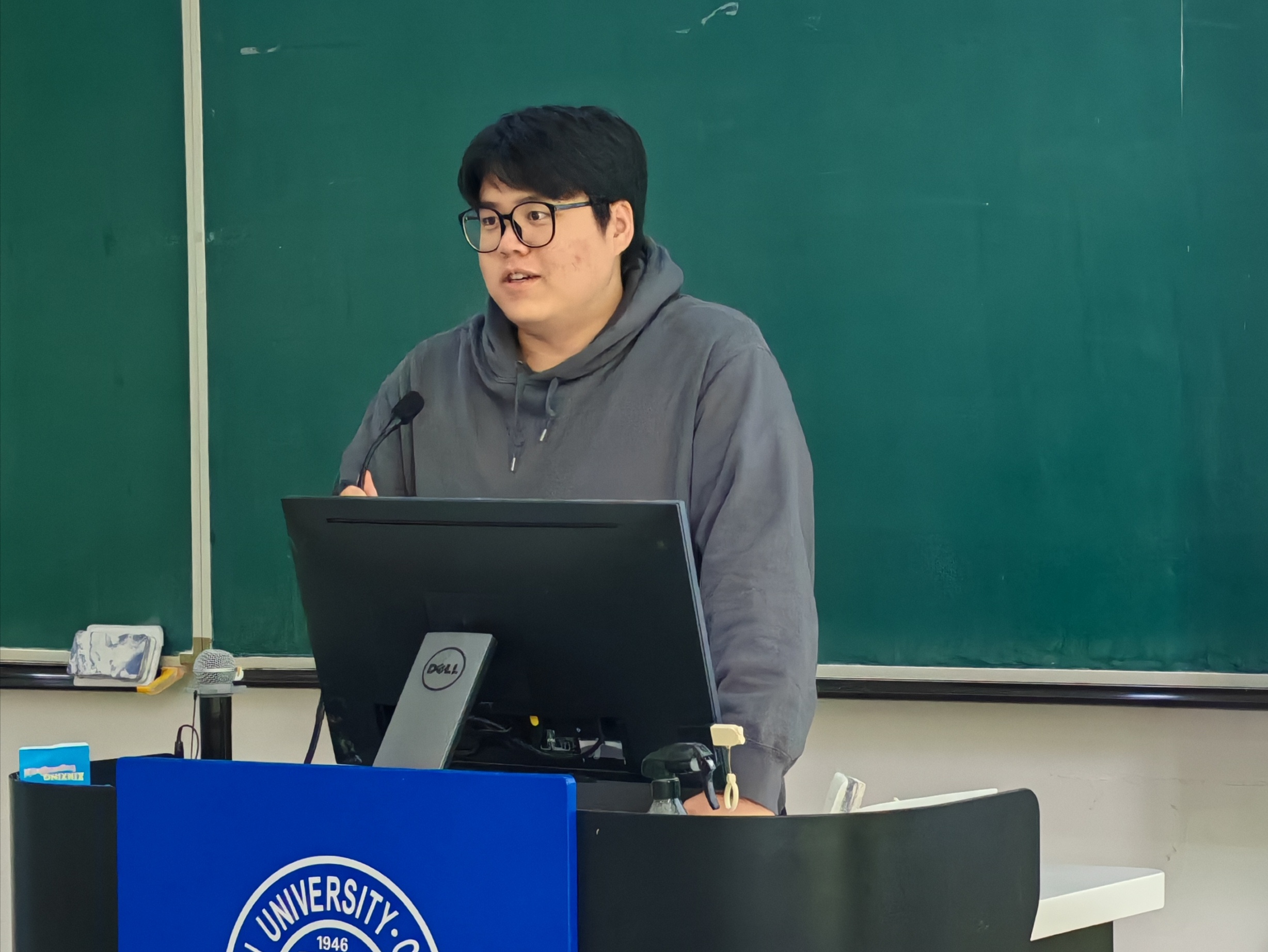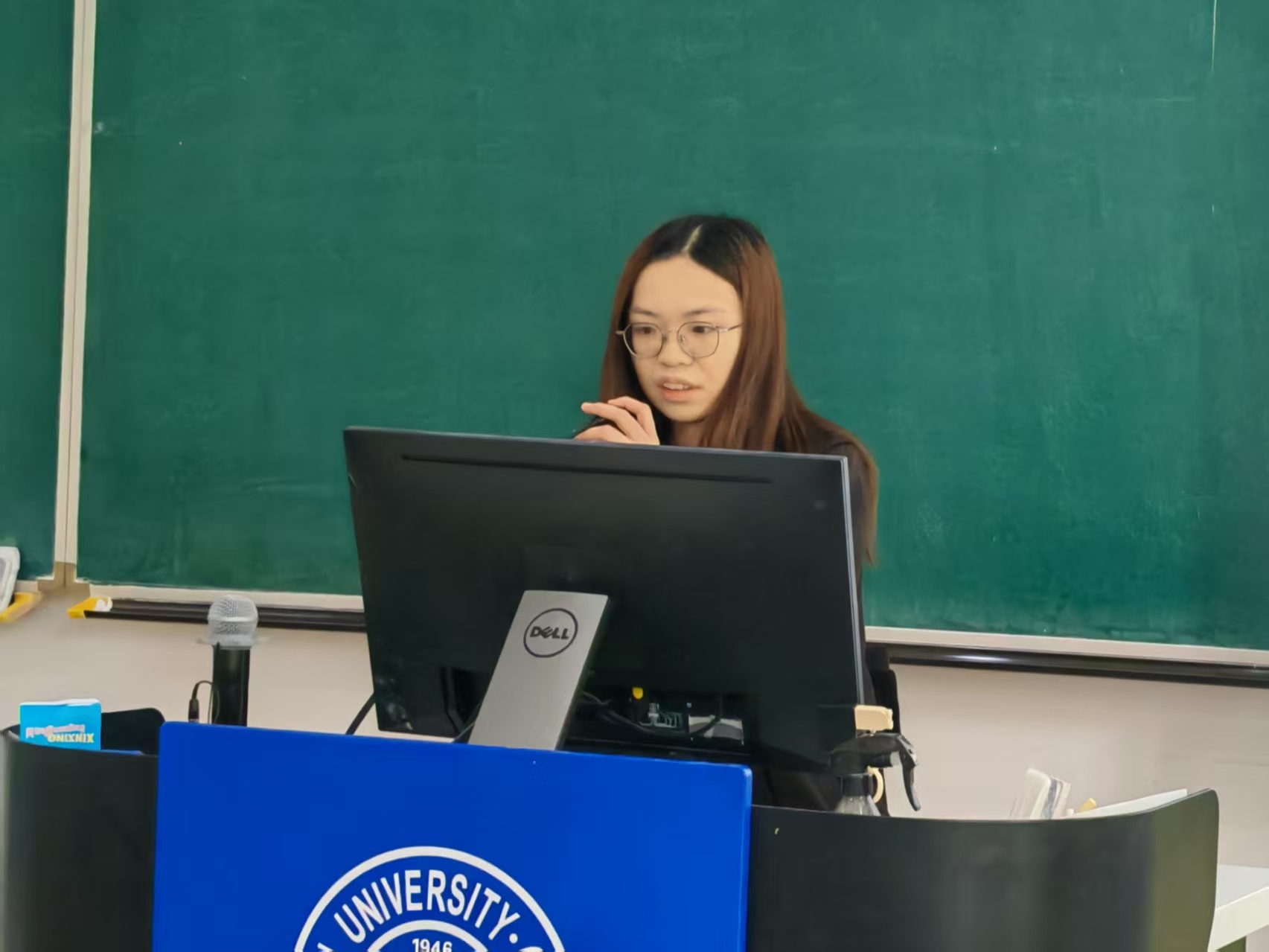 学生会科研学术部负责人朱倩莹主持,2021级本科生王东元、刘震宇、戴思荣、张山峰分享经验。