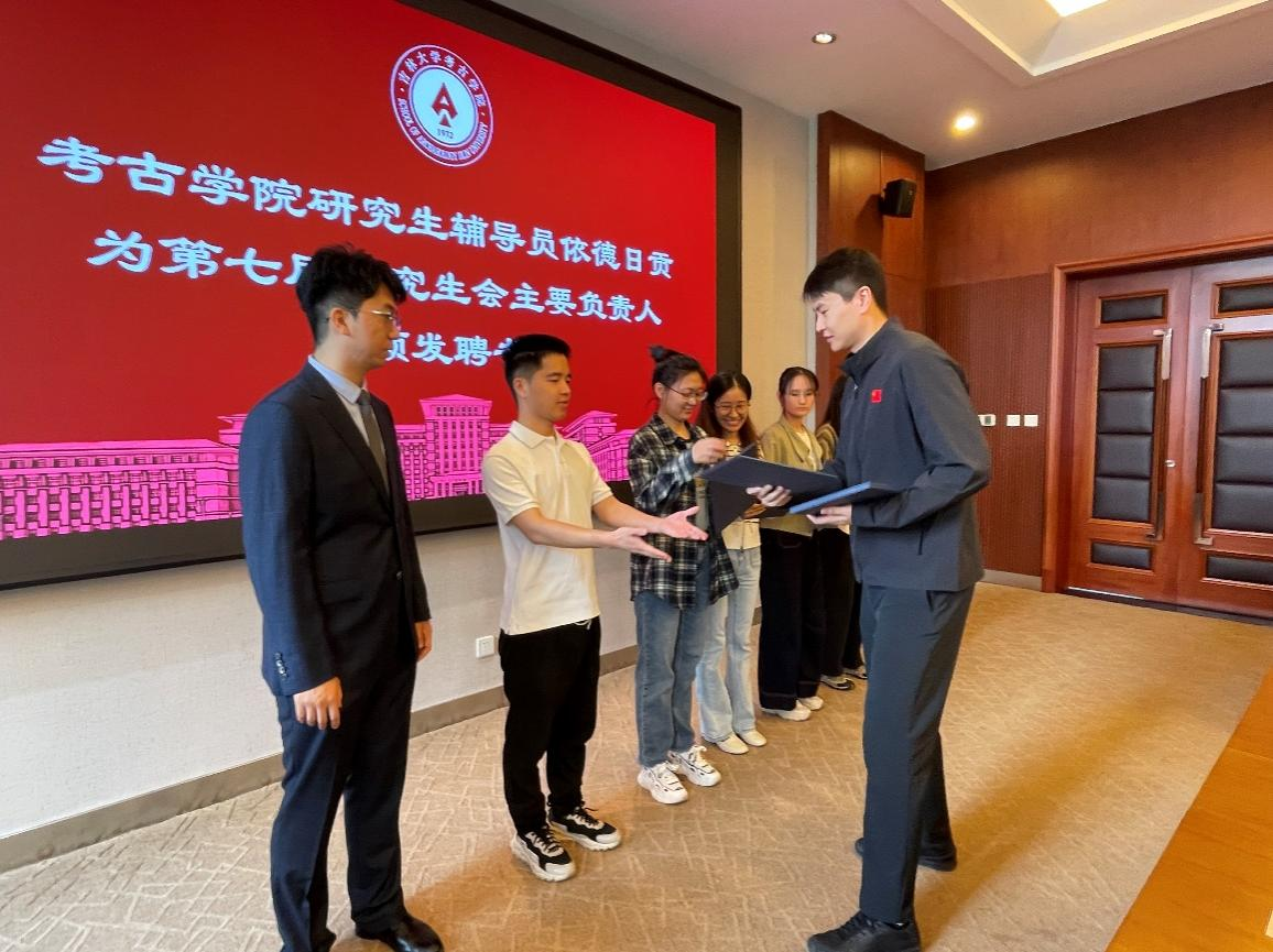 研究生辅导员依德日贡老师为第七届研究生会主要负责人颁发了聘书,并为优秀成员颁发了荣誉证书,充分肯定了他们的辛勤付出与卓越贡献。