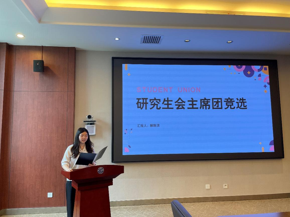 第八届研究生会换届选举在匡亚明第三会议室举行。本次大会由第七届研究生会主席团成员李广泽主持,主要内容为总结过去、表彰先进,展望未来、选举新人。