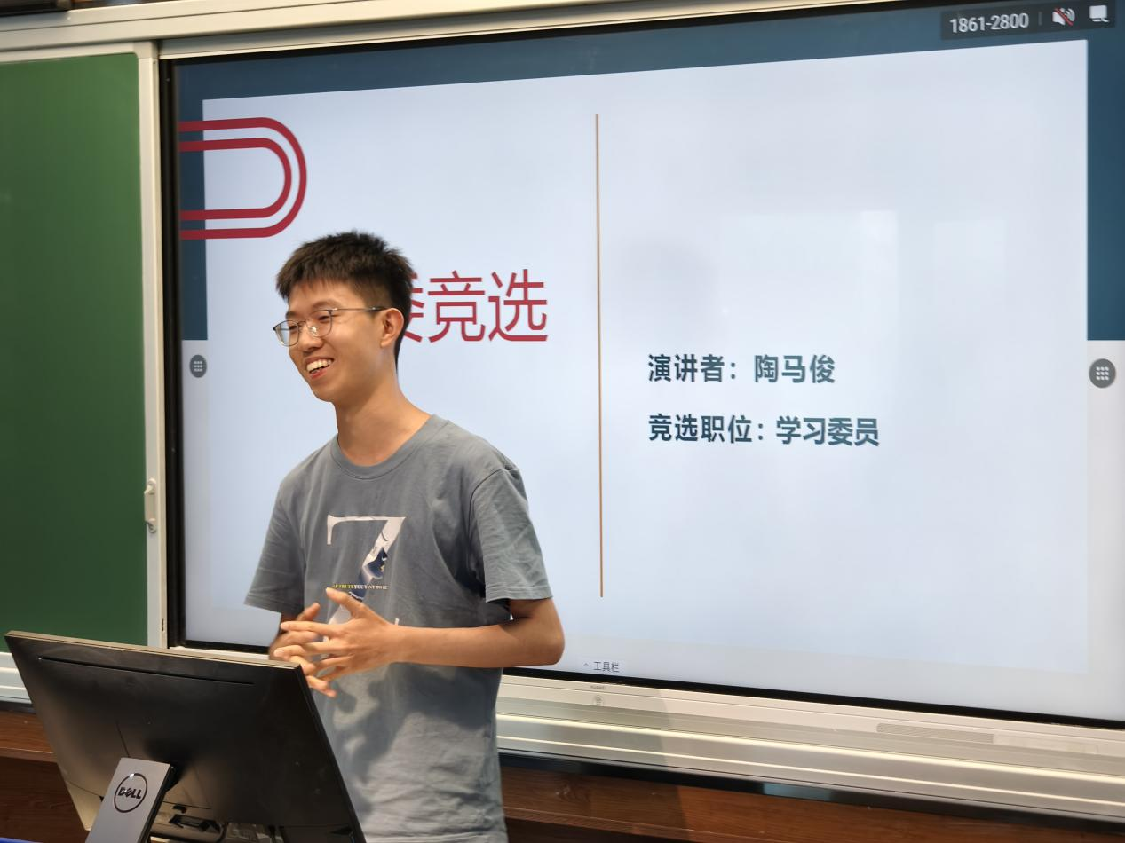 闫志璇同学首先就本次会议作开场白,向大家介绍与会人员并宣读竞选规则。随后,各位班委候选人依次上台进行个人陈述。为确保班级团队成员能力素质过关过硬,各位候选人分别从“个人简介、岗位认识、竞选优势、工作设想”四个方面进行竞职演说。全体与会学生进行无记名投票。